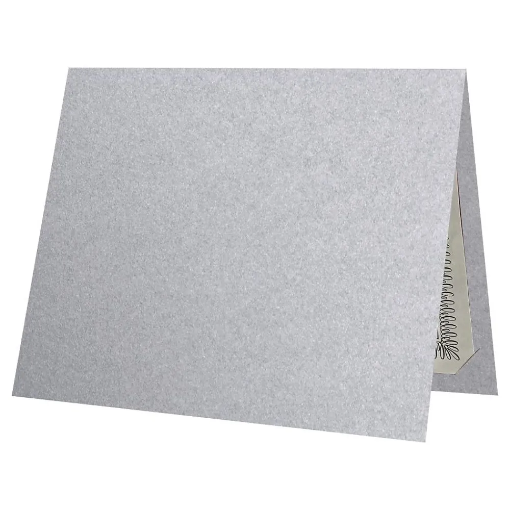 These Certificate Holders are made of high quality cardstock, contain a cover, and secure contents inside at the corners. Certificate Holders in Silver Metallic measure 9 1/2 x 12 and are constructed to hold 8 1/2″ x 11″ size award certificates or documents. Inserts are kept in place by a die-cut slit in each of the four corners inside of the certificate holder. Made from thick, durable 105lb. cover stock in a bright silver, shimmery color. A professional, classic way to show off all awards and certificates in both landscape and portrait orientation.