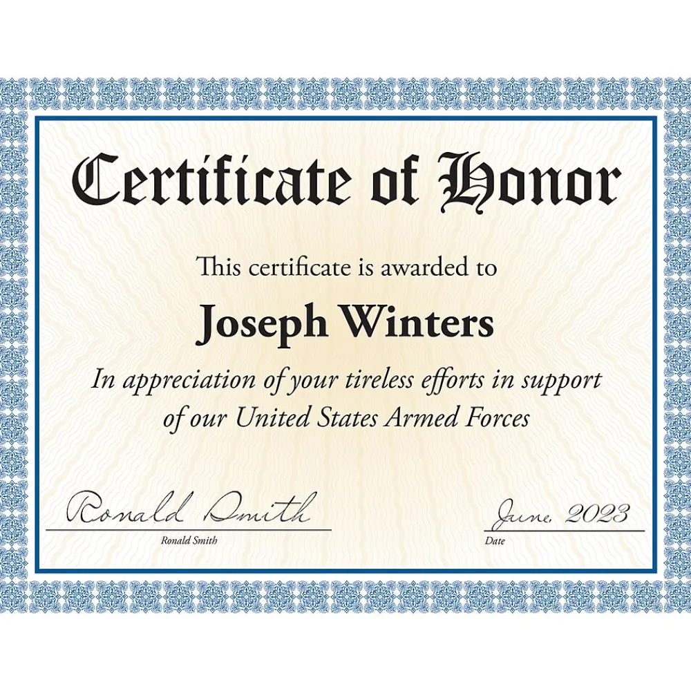Great PapersĀ® Westminster blue parchment certificate is acid and lignin free. Certificate measures 8.5″ x 11″ and is compatible with laser, inkjet printers.