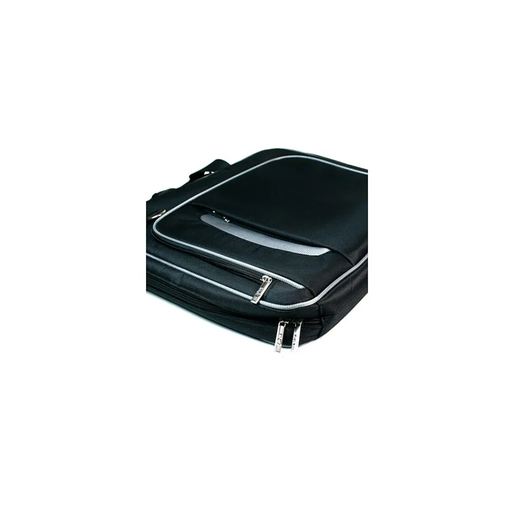 Black Back to School Messenger Shoulder Bag. Carry in style with this nylon messenger bag. Multiple zipper compartments for pen, wallet, phone, cable, and other necessities. Laptop compartment fits macbook pro 13 and other 13 inch laptop.