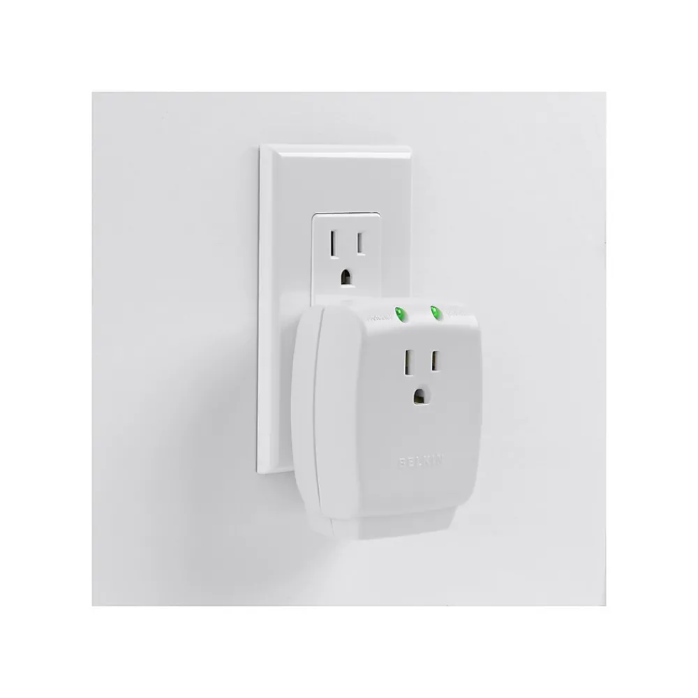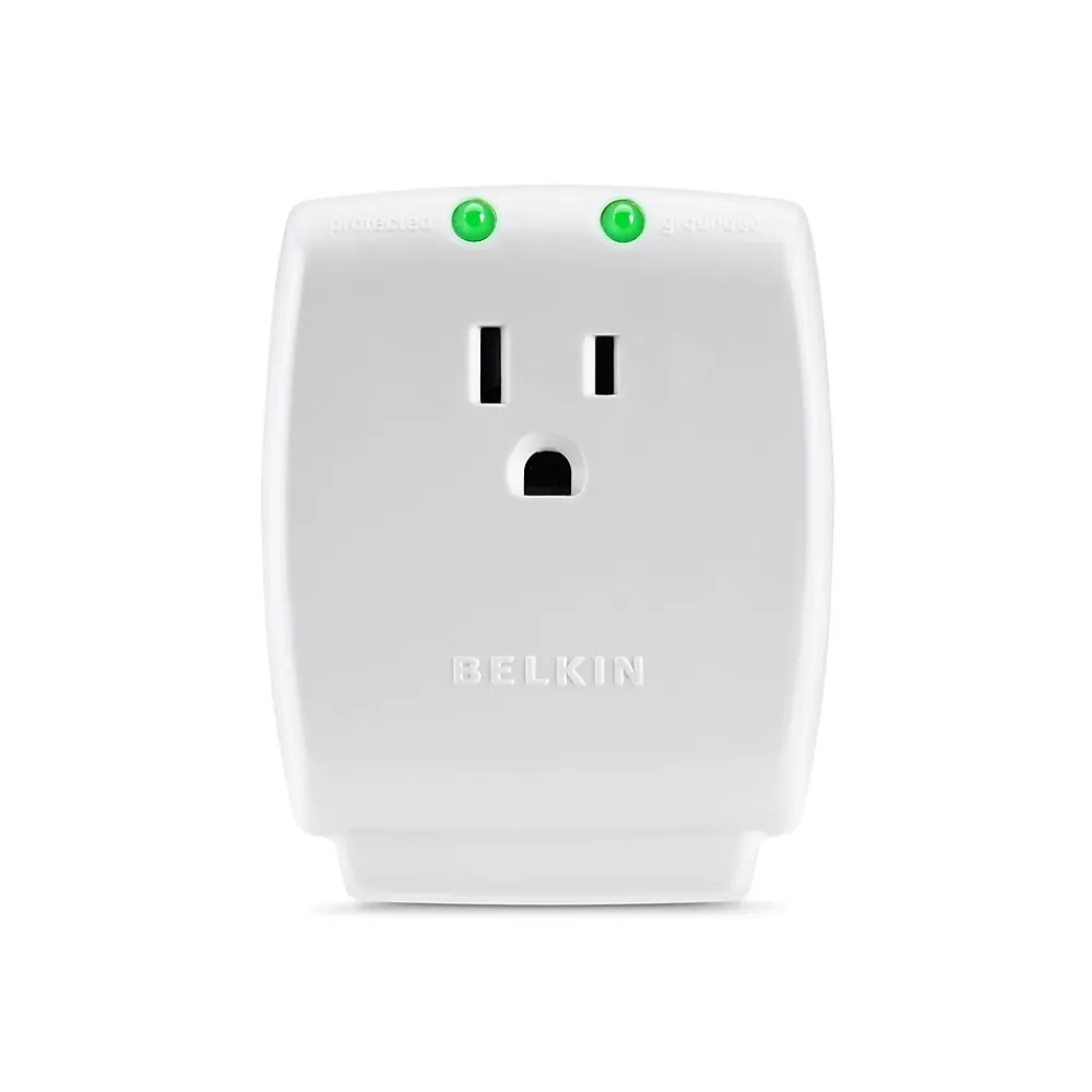 The one-outlet Home Series SurgeCube from Belkin offers wall-mount-direct, plug-in surge protection for your general electronics, home appliances, and more. This single outlet model boasts 885 joules, 45,000-Amp maximum spike current, and a lifetime $50,000 Connected Equipment Warranty for your peace of mind.