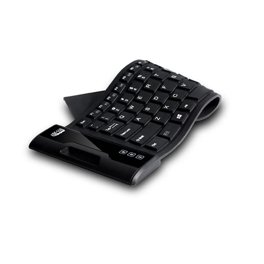 The Adesso® AKB212UB waterproof flex keyboard in black, is made with antimicrobial material that protects against germ buildups between washings. This hyper-flexible keyboard is perfect for outdoor or mobile settings.