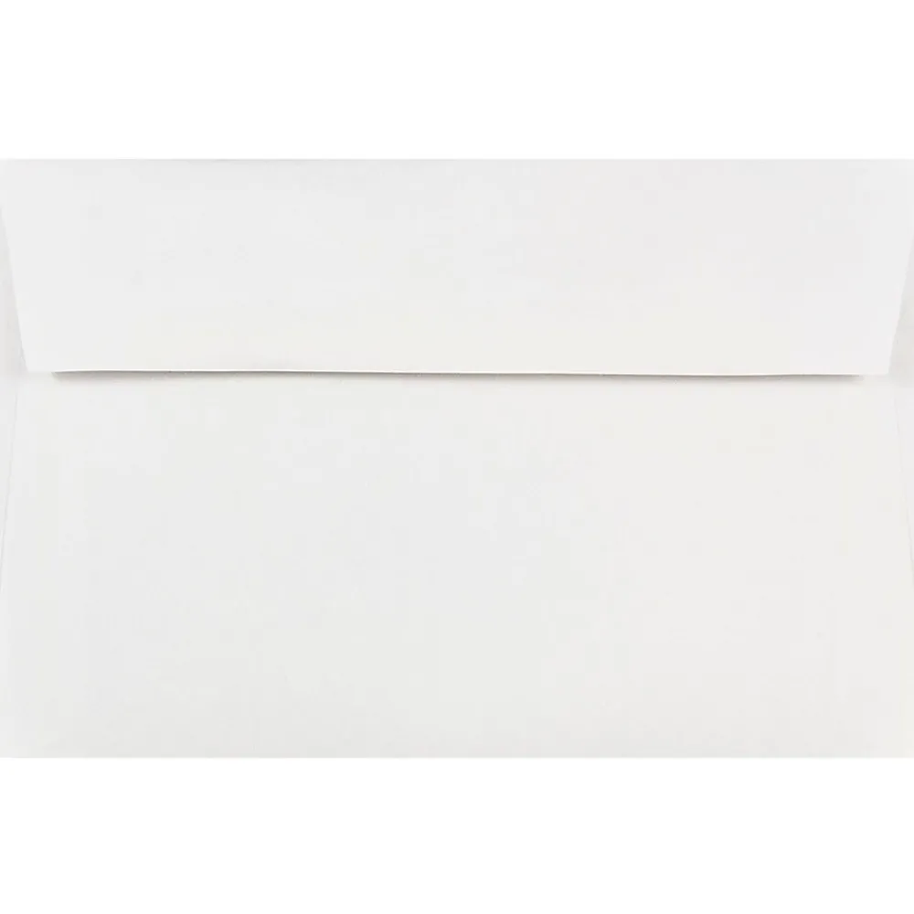JAM Paper A9 White Booklet Envelopes are a classic, go-to choice for all your mailings. Your mail is certain to be seen, as these 5 3/4″ x 8 3/4″ envelopes are larger than the typical envelope. Place your announcements, greetings, marketing materials, catalogs, flyers, letters, documents, and more without having to bend, cram, or crease. Use for any occasion in the office, home, classroom and everywhere in between! However you use, expect high quality performance and efficacy. This pack contains 50 white booklet envelopes made from 24 lb. paper. Each envelope has a booklet opening, straight flap, gum closure, and smooth finish.
