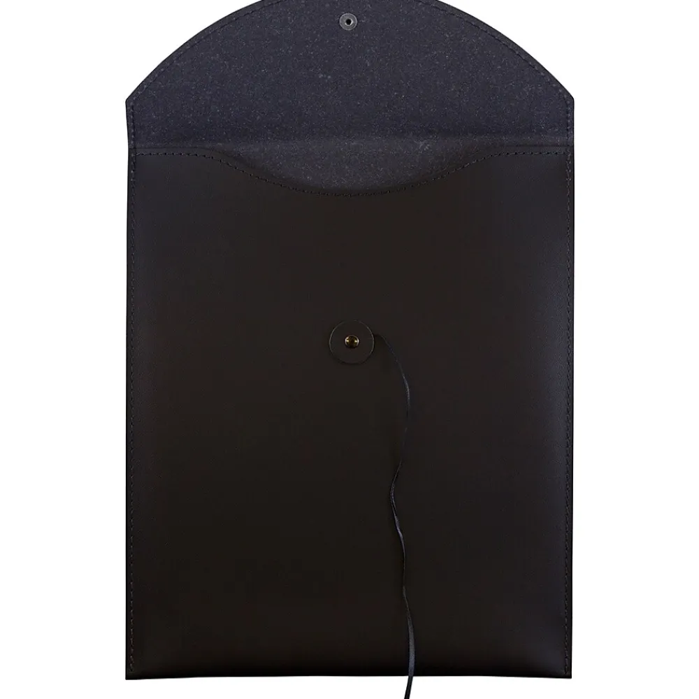 JAM Paper® Leather Portfolio with Button and String Tie Closure is the perfect accessory for your items. Bring this gorgeous black leather portfolio to work with you and coworkers are guaranteed to stop, stare, and ask where they can get one. Store important documents, letters, and more while they stay protected in one place using a button and string tie closure. This portfolio is made from real Italian leather, measures 9 1/2″ x 12 1/2″, has a booklet opening, round flap, and smooth finish.