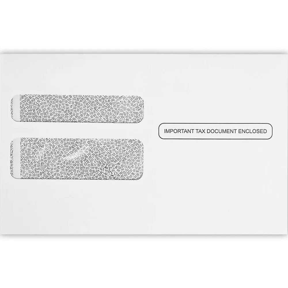 Are you looking for a pack of high-quality envelopes for tax forms and financial documents? These envelopes provide all you need in a tax envelope and more! They boast a professional and discreet look combined with a durable construction, making them the ideal choice. In addition, these envelopes feature a moistenable glue sealing method on the flap! Simply moisten and press down to seal your envelopes. You’ll get a great seal every time. These 24 lb.. text-weight envelopes are an excellent choice because they’re about twice as thick as regular printer paper, so they will both protect and conceal whatever you place inside them. The sturdy and durable thickness is perfect for shipping long distances, so you won’t have to worry about bending or tearing. Further simplifying the process, these envelopes come complete with properly positioned windows so you won’t have to address them individually. Simply position the preprinted address that appears on any given tax form in the translucent poly window. Tax season can be stressful enough — these expertly designed mailing supplies were made to simplify the process. We provide security tint, first-class airmail, and preprinted options so you’ll be able to find something that perfectly suits the needs of your company’s employees. These envelopes measure 5 3/4″ x 9 1/4″ (146 mm x 235 mm). Purchase a compatible set for each official IRS tax form you need. 24 lb.. White w/ Security Tint envelopes are a durable and high-quality option for all your tax-related needs. Purchase a package of 50, 250, 500, or 1000 today!