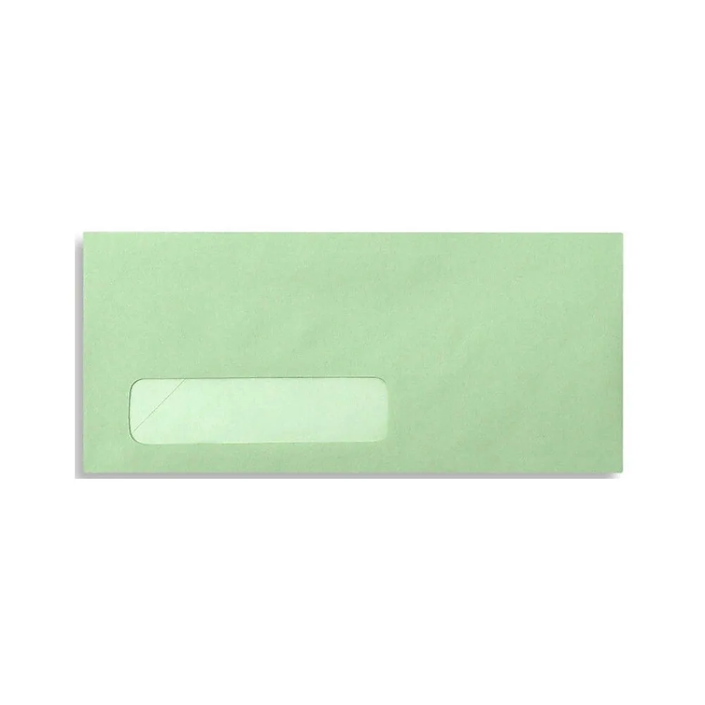 LUX® Size 10 window envelope in pastel green color is ideal for sending letters with addresses imprinted on it. 4 1/8″ x 9 1/2″ Envelope compatible with laser and inkjet printers has 60 lbs paper weight and is sold as 500 per box.