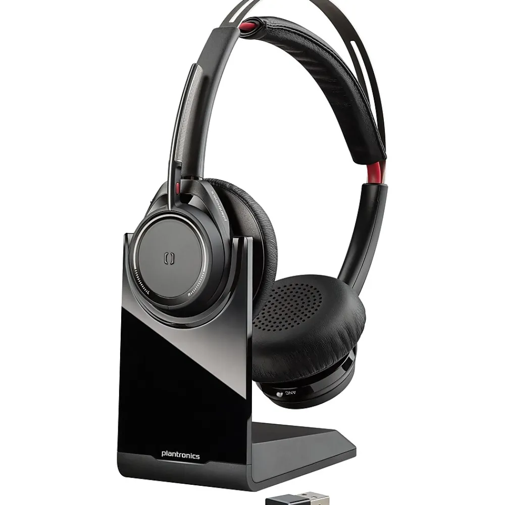 The Plantronics Voyager Focus UC B825-M stereo Bluetooth headset with ANC microphone, features multi-device connectivity, dynamic mute alert to control your conversations and desktop charging stand for efficient charging. It offers up to 150′ of wireless range to enjoy mobility for calls and music. The active/passive noise canceling and immersive stereo of this headset, allows you to concentrate on your calls or your music without distractions. The Voyager Focus incorporates smart sensor technology and offers outstanding audio quality. It also features adaptive controls for pause/play and track forward/back, OpenMic button to hear your surroundings as well as online indicator lights lets others know when you are on a call.