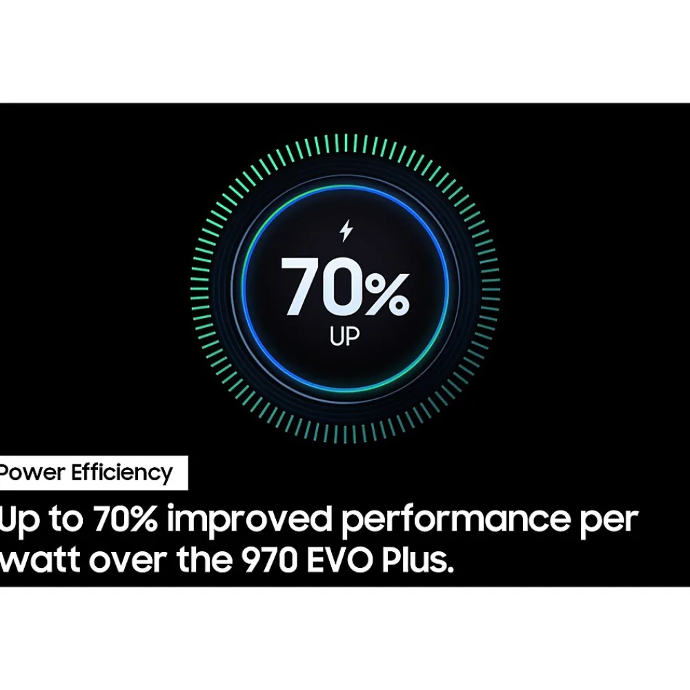 - Get power efficiency all while experiencing up to 70% improved performance per watt over the 970 EVO Plus