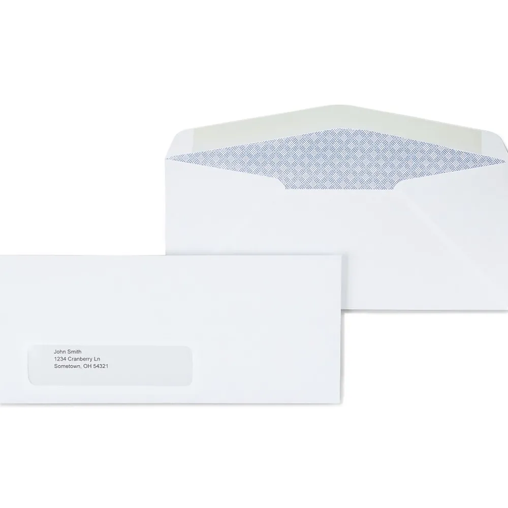 Mail out documents and files that need to remain confidential with these security-tinted #10 envelopes. A security pattern located on the inside of each envelope discreetly obscures all information contained inside, ensuring that private information remains concealed. Made out of sturdy 24-pound white woven paper that helps to prevent tears and rips, these security-tint envelopes stand up to sorting-room conditions, keeping the contents inside safe.