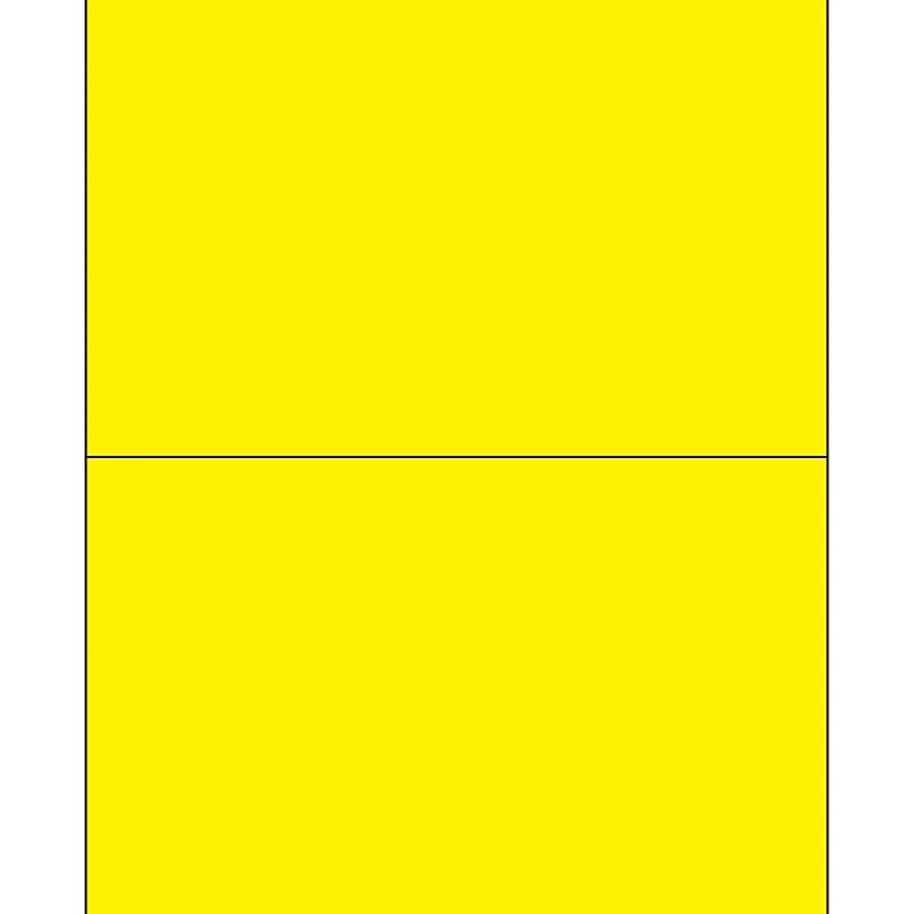 8 1/2″ x 5 1/2″ Fluorescent Yellow Rectangle Laser Labels. Use to create your own product or mailing labels. Labels work with both Laser and ink jet printers. Permanent adhesive. Labels stick to a variety of smooth surfaces including paper, corrugated, plastic, wood, glass and metal.