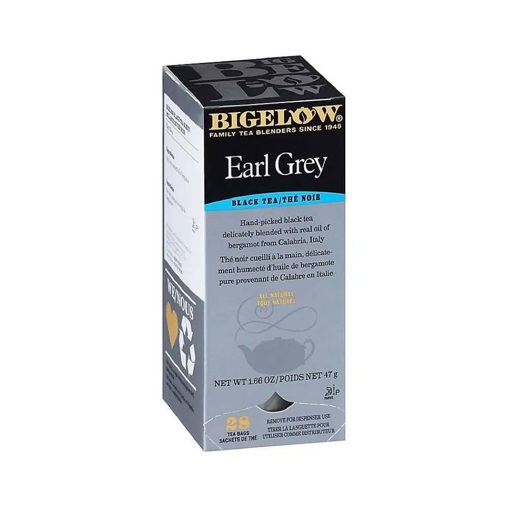Upgrade your tea routine with a steaming hot cup of Earl Grey. Individually wrapped for freshness, Bigelow Earl Grey tea bags are prepped and ready for immediate use or display. Handpicked tea leaves and a hint of bergamot oil combine for an aromatic and flavorful blend that’s delicious any time of day.
