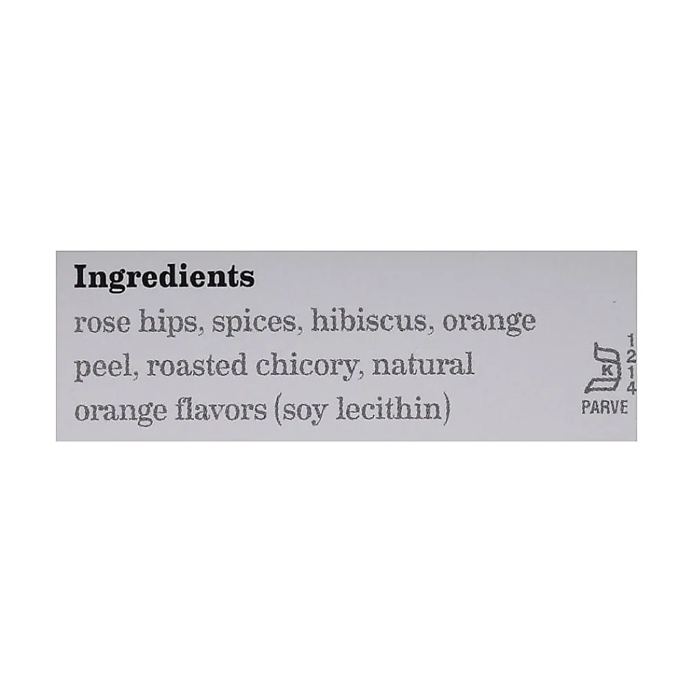 - Ingredients summary: hibiscus flowers, orange peel, spices, rose hips