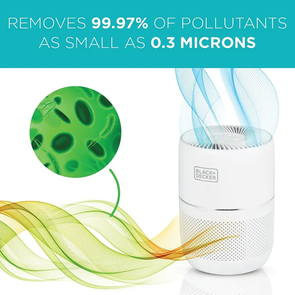 - QUICK & SIMPLE TO USE – Efficiency made easy. This ENERGY STAR certified compact air purifier is equipped with touch controls to customize settings such as Low, Medium and High speeds. In Sleep Mode the fan operates at a reduced speed.