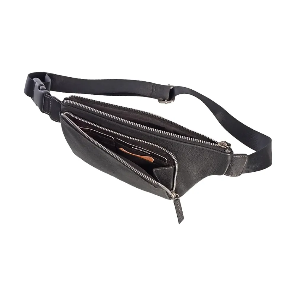 Designed for comfort, this multipurpose double-zipper belt bag with cardholder by Club Rochelier is stylish yet durable. Fabricated in genuine leather and features quality zippers, an adjustable nylon strap, and a quick-release buckle. The main pocket is large enough to carry your cell phone, keys, pen, charger, and other necessities. The front zipper pocket has six credit card slots. Great for jogging, biking, travel, hiking, and all kinds of outdoor activities and daily use.