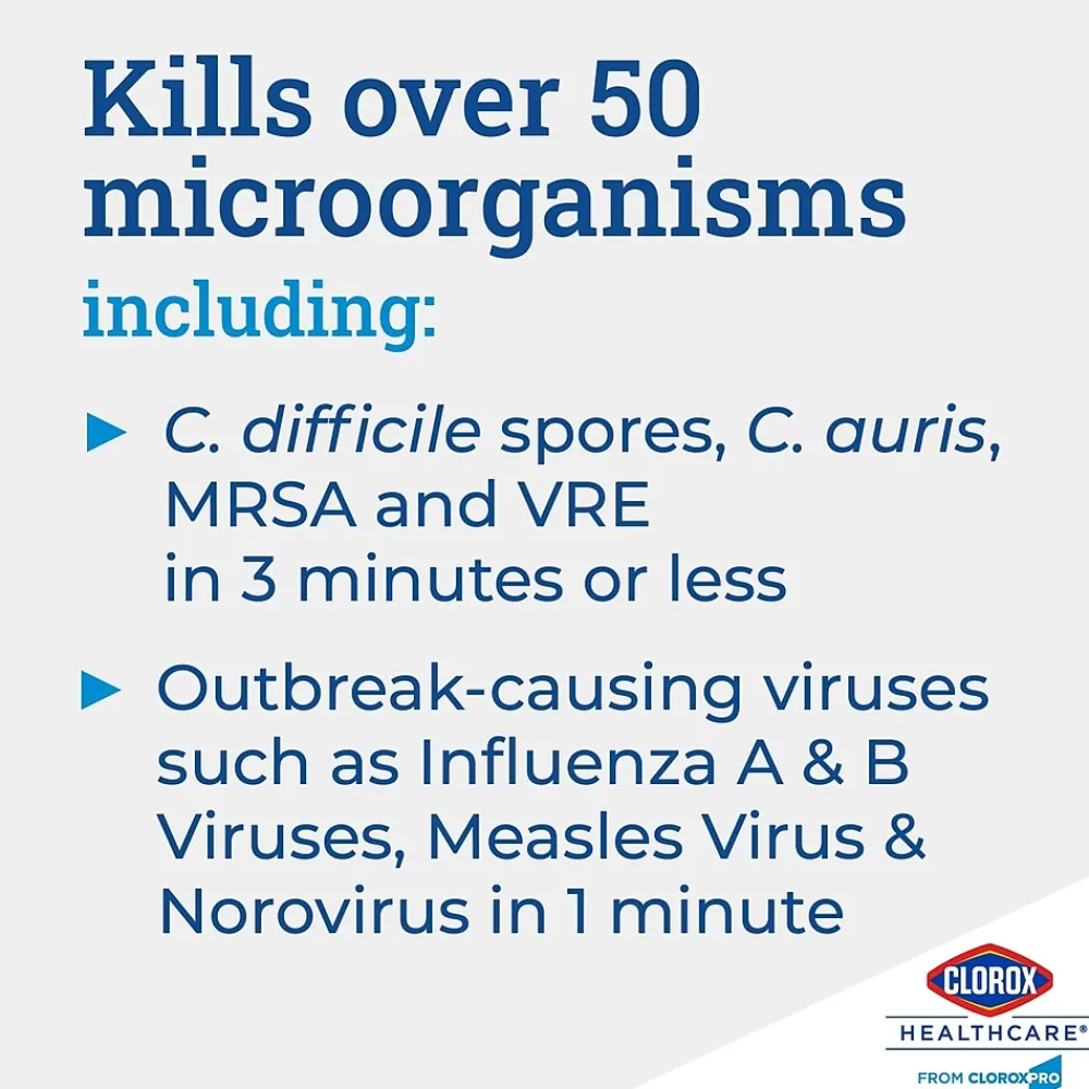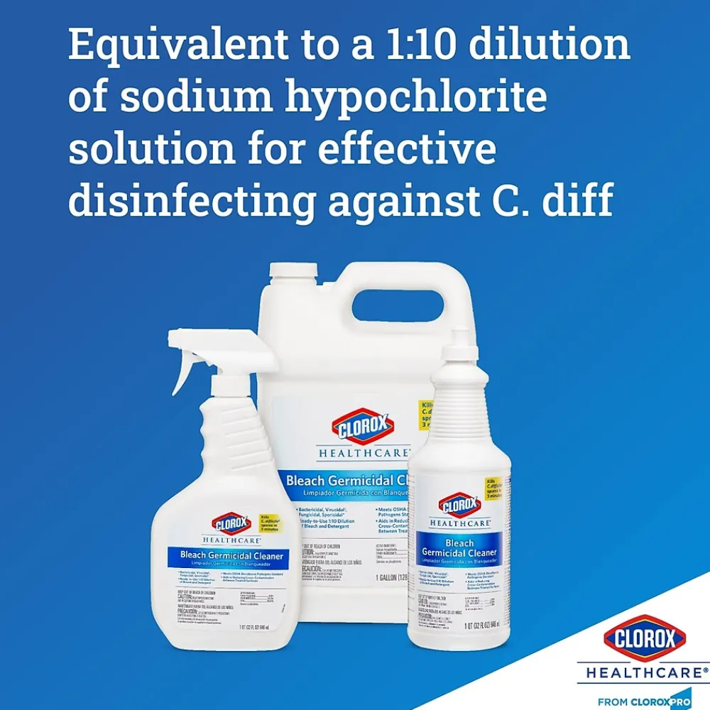 - GERMICIDAL BLEACH: Clorox HealthcareBleach Germicidal Cleaner is a ready to use one-step cleaner disinfectant; EPA registered to kill C.Difficile spores in 3 minutes and 49 other microorganisms in 1 minute