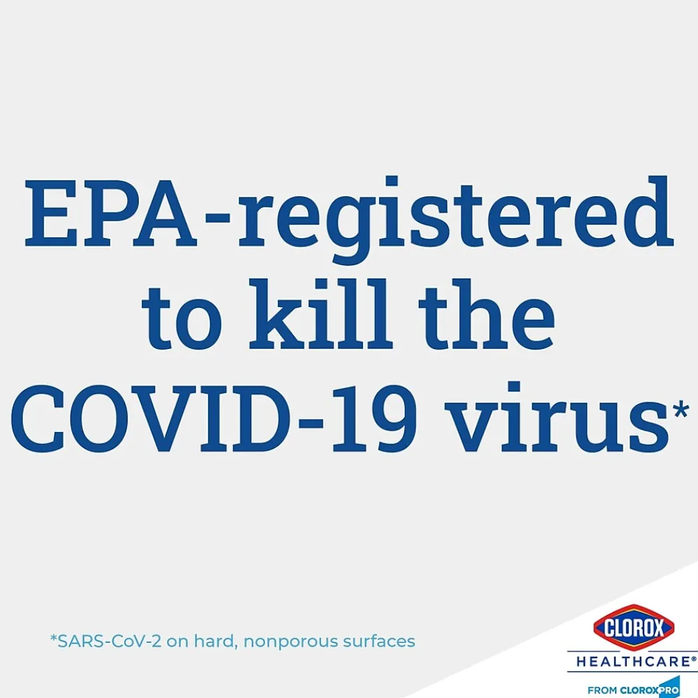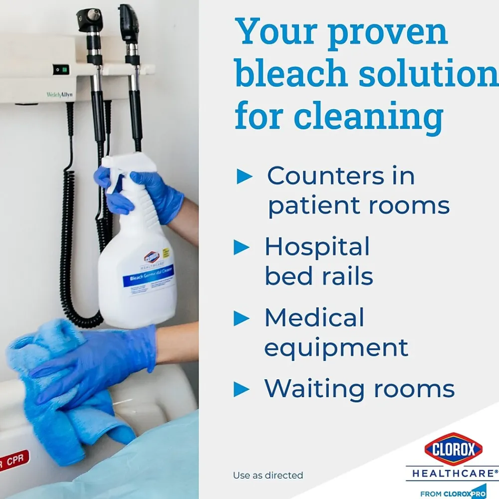 Healthcare professionals trust Clorox Healthcare® Bleach Germicidal Cleaner to help them overcome infection control challenges in a constantly changing healthcare environment. Clorox Healthcare® Bleach Germicidal Cleaner is a ready to use, 1 step cleaner- disinfectant containing a 1:10 bleach dilution to meet CDC and OSHA guidelines for disinfecting surfaces in healthcare settings. This cleaner disinfectant is EPA registered to kill a total of 50 microorganisms, including HAI causing bacteria like MRSA and VRE, outbreak causing viruses such as Influenza A and B viruses, Measles Virus and Norovirus and fungi in 1 minute. This disinfectant kills 99.9999% of C. difficile (C. diff) spores in 3 minutes, according to the current EPA recommended testing standard (June 2014). In addition, this cleaner meets EPA criteria for use against SARS-CoV-2, the virus that causes COVID-19. The ready-to-use disinfectant eliminates compliance risks and labor costs associated with dilutable disinfectants. Designed for easy refilling to meet needs of heavy users. This bleach solution features an anticorrosion agent and is formulated for broad surface compatibility with healthcare surfaces including stainless steel, glass, plastic, porcelain, glazed ceramic, laminated surfaces and vinyl. Intended for use in Healthcare settings.