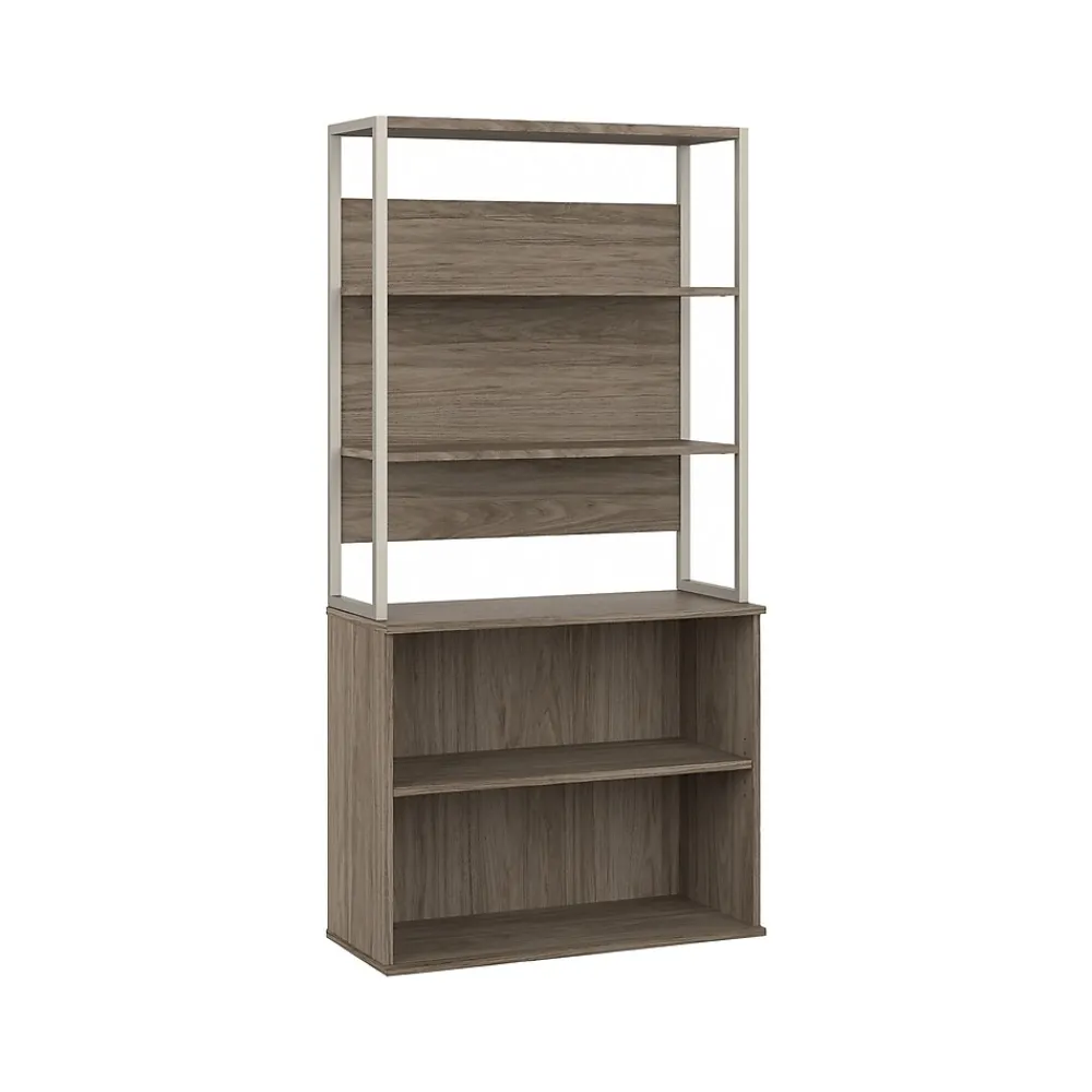 - Bundle includes: small two-shelf bookcase and 36″W bookcase hutch