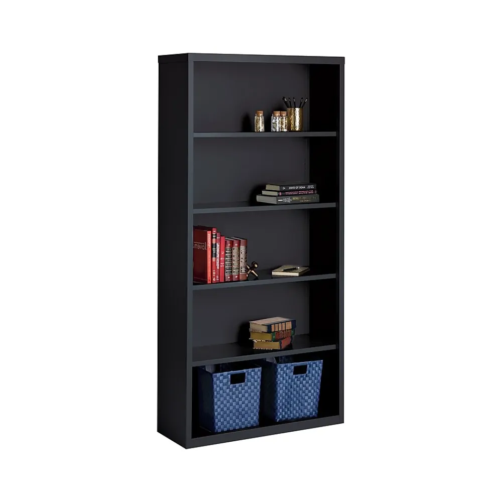 - Standard bookcase provides plenty of storage space and features durable steel construction
