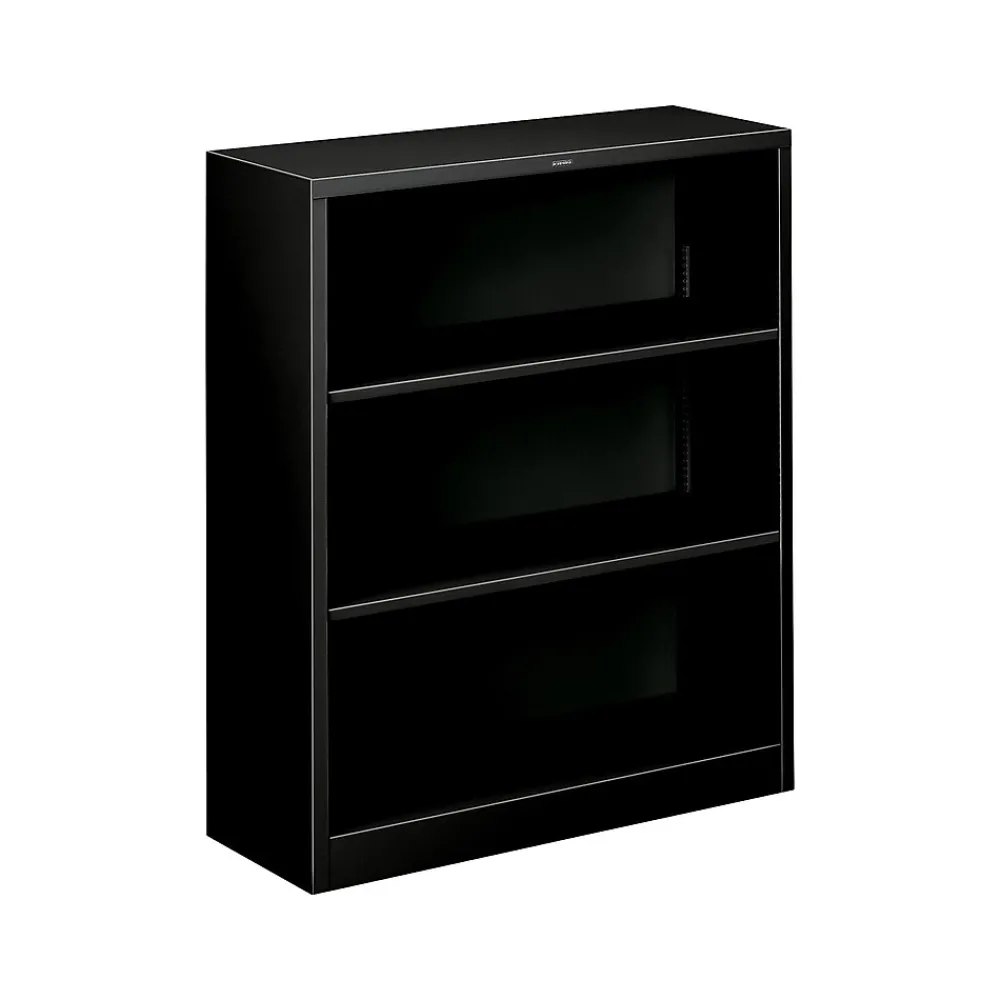 Gain control of disorder with this sturdy, steel bookcase. The three shelves are adjustable for customizable height, and extra shelves are available for additional storage. This black Hon bookcase has a welded construction for strength and durability and is fully assembled for convenience.