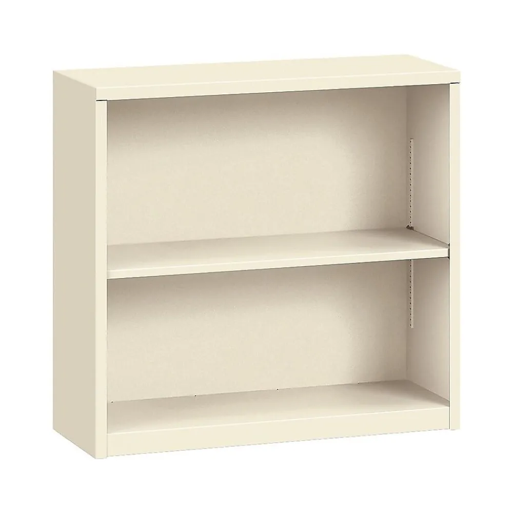 Keep office and business spaces organized with this steel bookcase. Its two open shelves provide easily accessible storage for work essentials, plaques or journals, and the metal construction ensures sturdy mounting for heavy items. This HON Brigade bookcase has a putty finish and a straight, rectangular profile for easy, flush positioning.