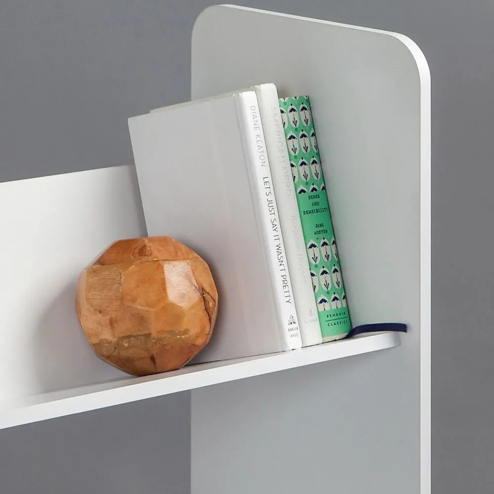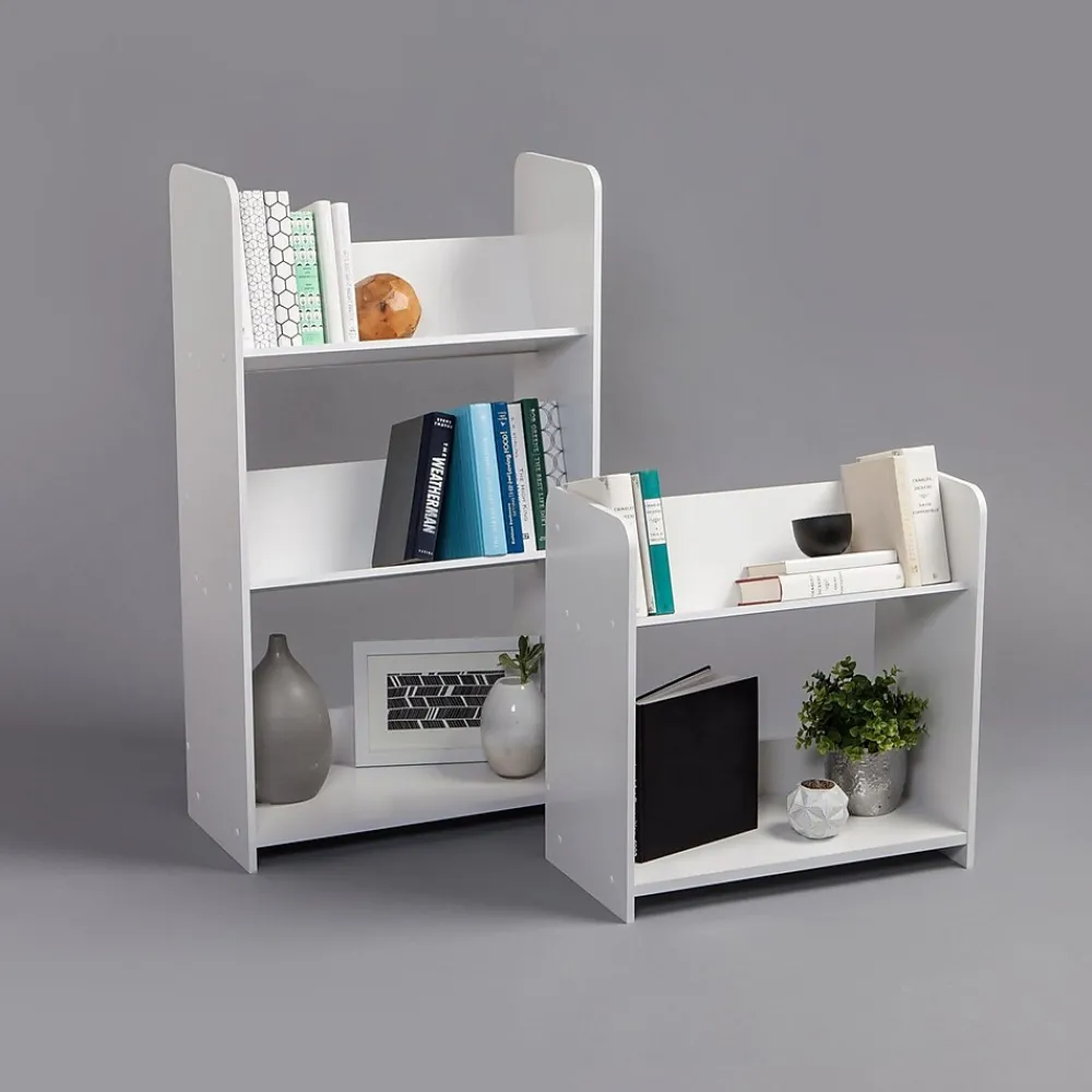 A new angle on shelves! Stash books, office supplies, or display your decorations in one space with this stylish IRIS bookcase. Three tiers of angled shelves keep your items safe and secure, and solid white color fits into any decor. Assembly Required. Compliant with CARB Regulation 93120 – Phase 2