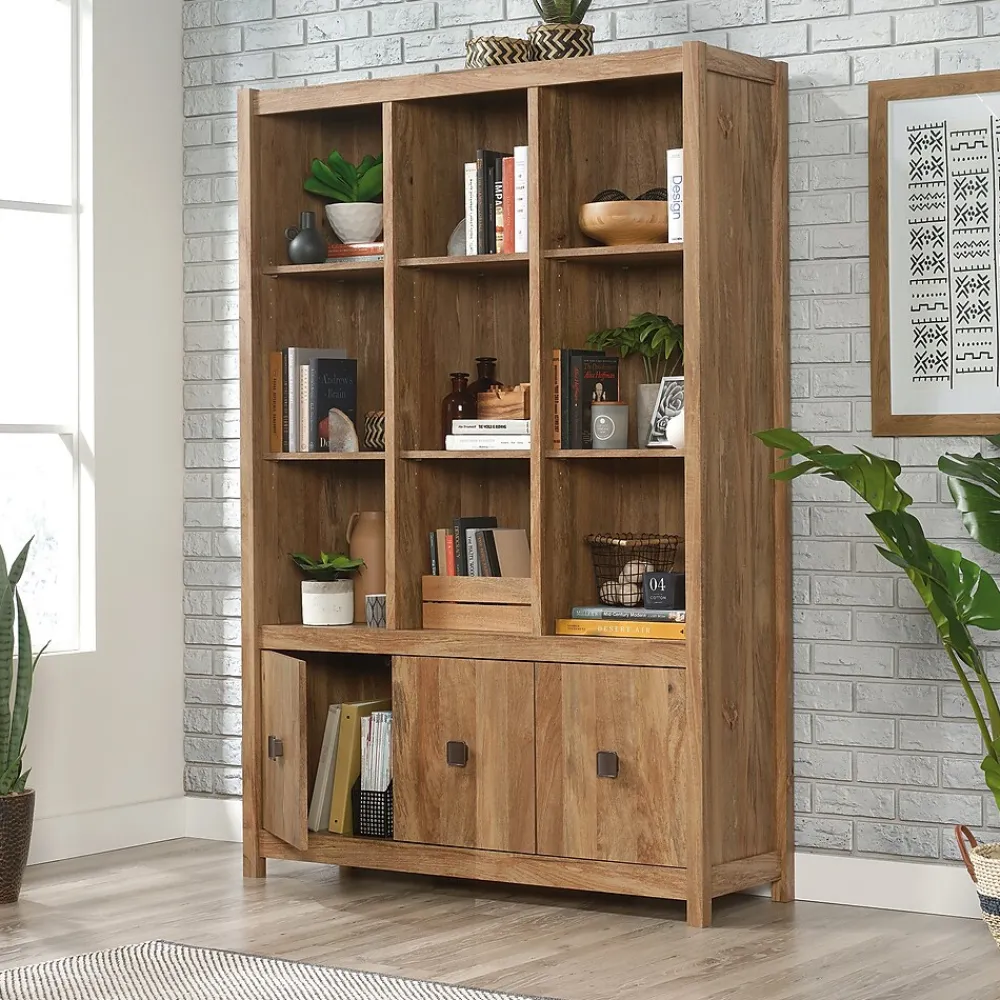 Kick clutter and chaos to the curb and create the organized home of your dreams with this storage wall from the Cannery Bridge collection. This beautiful bookcase features nine cubbyhole storage areas that provide you with the perfect amount of space to stow away items like stacks of books, organizing bins, photo albums and so much more! These spacious cubbies also make a great spot to display your favorite home decor items like decorative plants, your collection of knick-knacks and photos of your family and friends. There is room for all your things! This wall storage includes six adjustable shelves that can move to different heights to create flexible storage for items of all shapes and sizes. Behind each of the lower doors is a hidden storage area for additional storage of other miscellaneous household items. Its eye-catching style and versatile design make this bookcase with storage a great fit for any room in your home. Finished in Sindoori Mango, this wall storage gives you the style you want with the functionality you need.