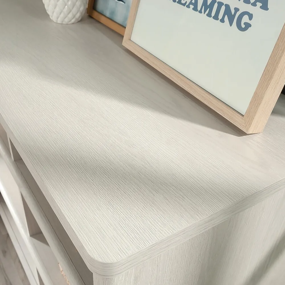 Display and store your favorite décor items in any room of your house with this cubby bookcase from the Dover Edge collection. A storage bookcase with cubbies is the perfect place to display and store books, binders, framed photos, collectibles, and your favorite home décor. This display bookcase is versatile enough to play a key part in any room of your home: As accent storage in your foyer or dining room, or as a sleek bookcase in the home office or living room. Or you can use multiple bookshelves with cubbies around the home. The top surface, with room for a lamp, speaker, photos and more, is another space you can use to show your own personal style. Thisbookcase complements other items in the Dover Edge collection for a completed look. Finished in Glacier Oak, this cubby storage bookshelf is versatile and stylish, what’s not to love? We hope you like what you see. Sauder designers travel the world and bring back the best and latest in style, finish, and color trends. This inspiring world travel is evident in the cutting edge and innovative furniture solutions we offer to you!
