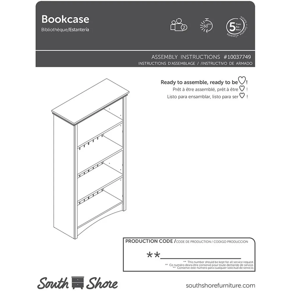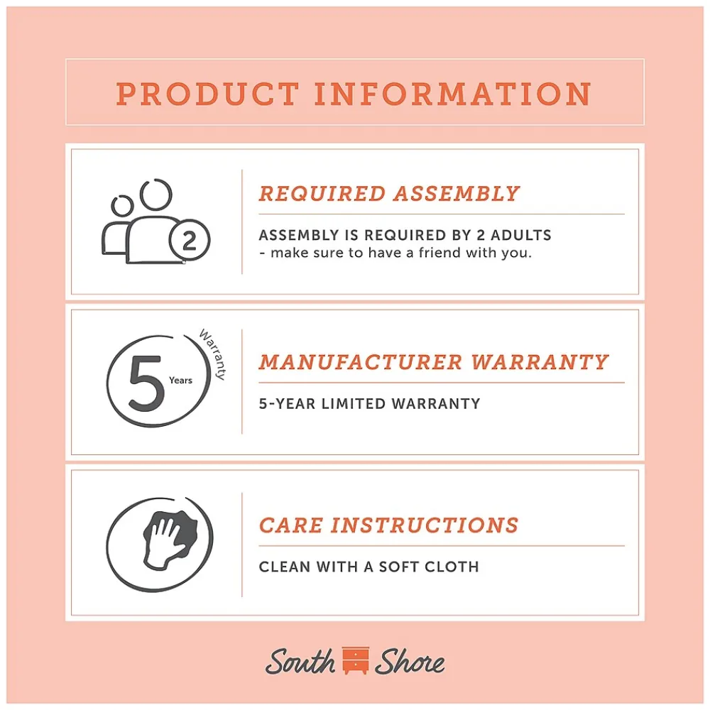 - Assembly is required by 2 adults and tools are not included.If you have questions regarding this product or need assistance do not hesitate to contact South Shore Furniture 7 days support