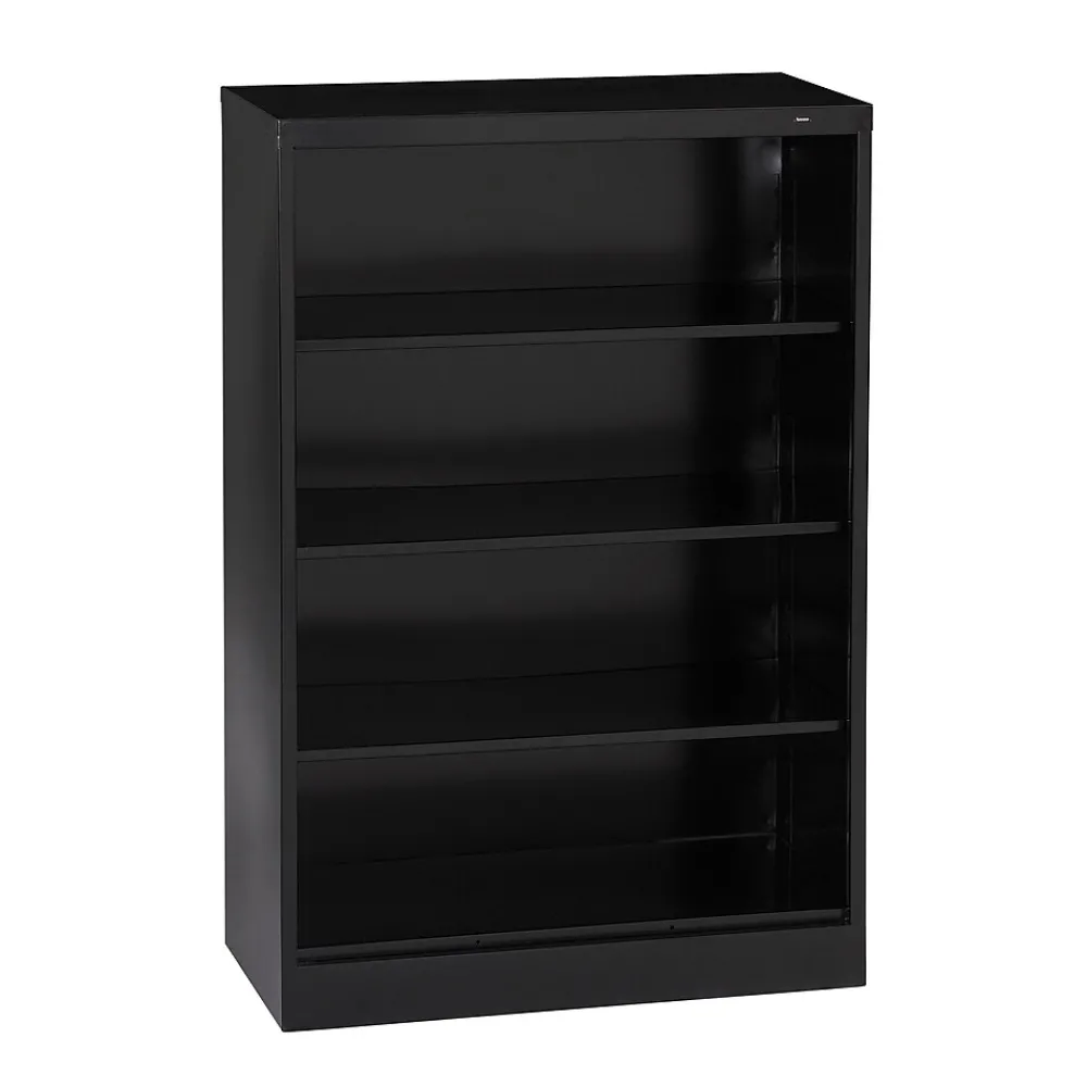 55″H Three Shelf Mobile 18″D Bookcase is constructed of sturdy steel and features extra deep shelves that easily hold binders, large books, and supplies. The inside shelf adjusts in 2″ increments, so you can set the shelves to fit to your specific needs. Welded steel construction assures years of use; powder coat finish resists scratches and marring. Its compact size allows you to place this bookcase nearly anywhere.