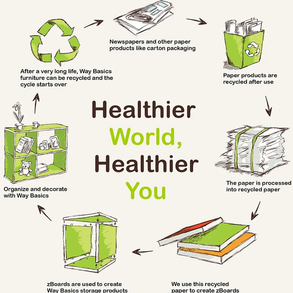 - Sustainably made from eco friendly non toxic zBoard recycled paperboard with semi glossy paper veneer finish