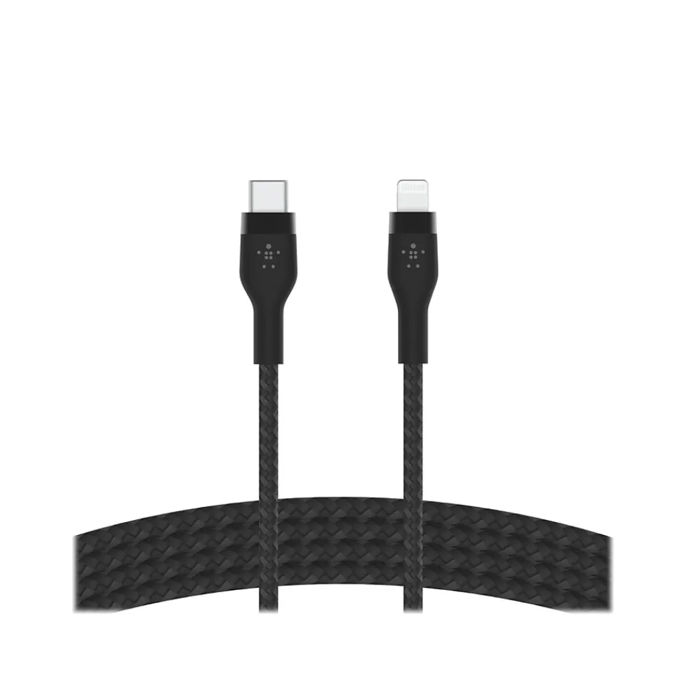 The Belkin BOOST↑CHARGE PRO Flex braided silicone cable is flexible and durable. It is 30 times more durable than a conventional cable, giving you a flexible, long-lasting charging solution that resists tangling and fraying. Features a fastening and storage system that allows you to store or secure the cable easily.