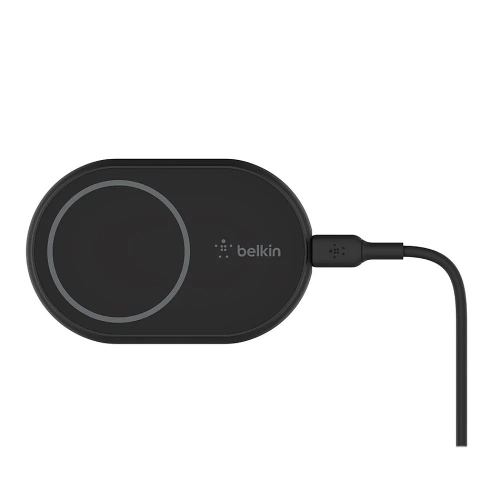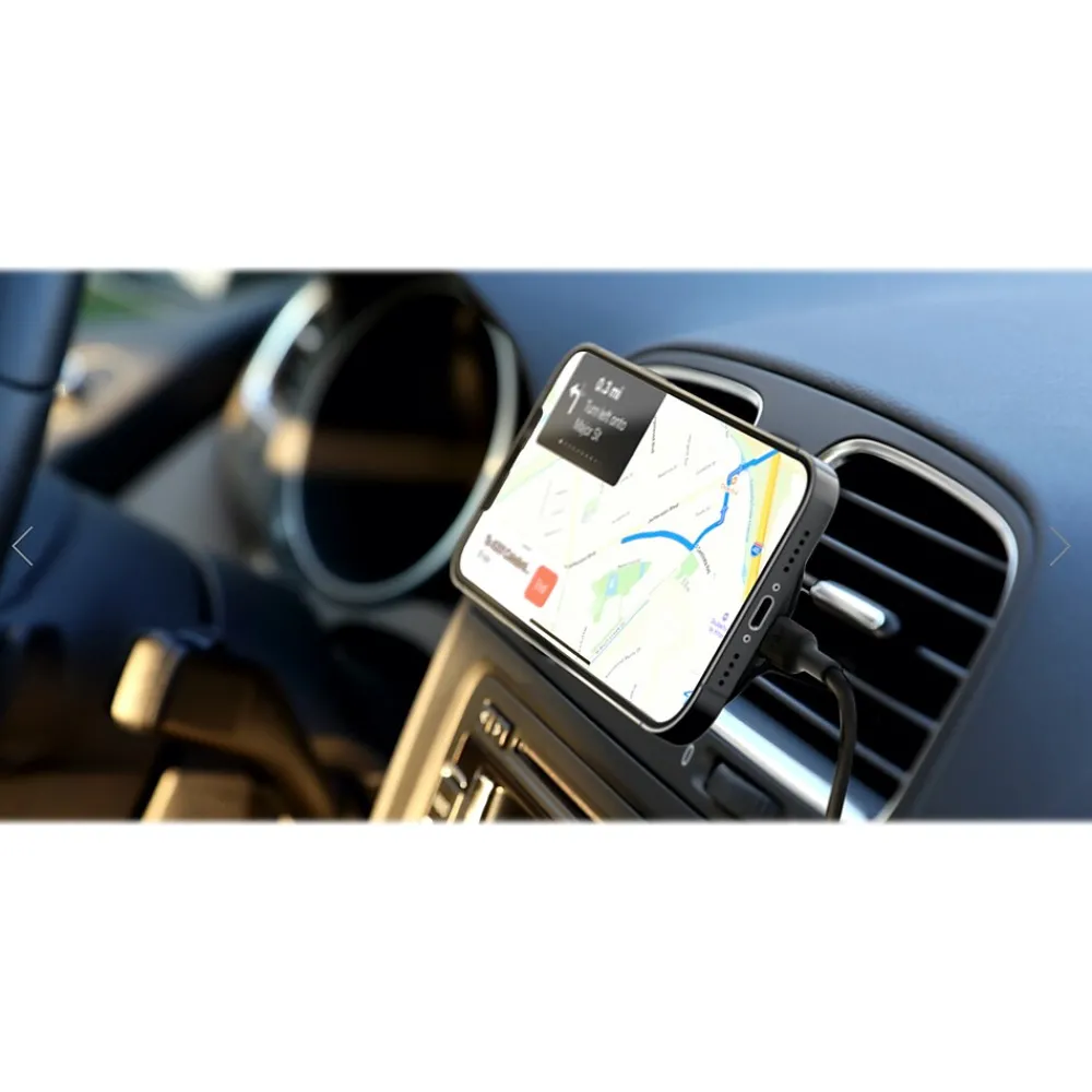 This Belkin BOOST CHARGE wireless car charger is designed to leverage the MagSafe technology in your devices. Quickly charge your device in the car with more power, so you’ll always arrive with a charge. Mounting your phone is easy with the convenience of one-handed placement and perfect magnetic alignment every time. View your screen in portrait mode to set the playlist, and flip to landscape mode for GPS, all without interrupting your charge.