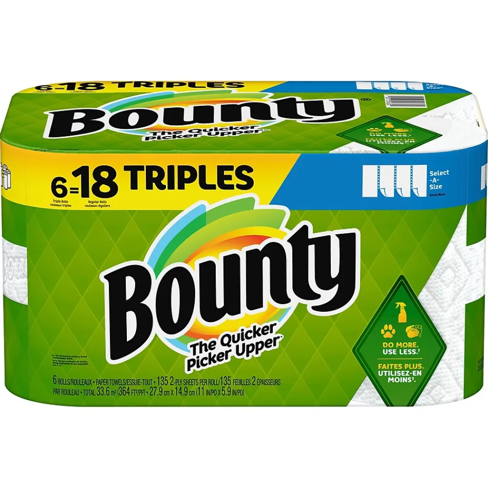 - Pack contains 6 Triple Rolls of white Bounty Select-A-Size Paper Towels