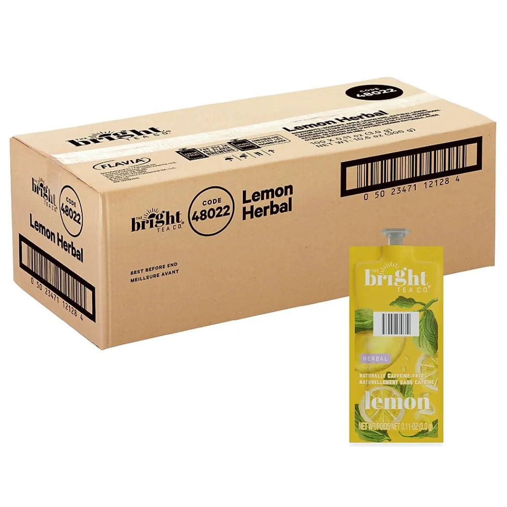 Enjoy a refreshing drink throughout the day with this 100-count pack of lemon herbal tea. The formula is caffeine-free, to prevent the jitters, and the individual packs deliver just the right amount of tea per serving. THE BRIGHT TEA CO. lemon tea Freshpacks come from tea that is Rainforest Alliance Certified to ensure quality.