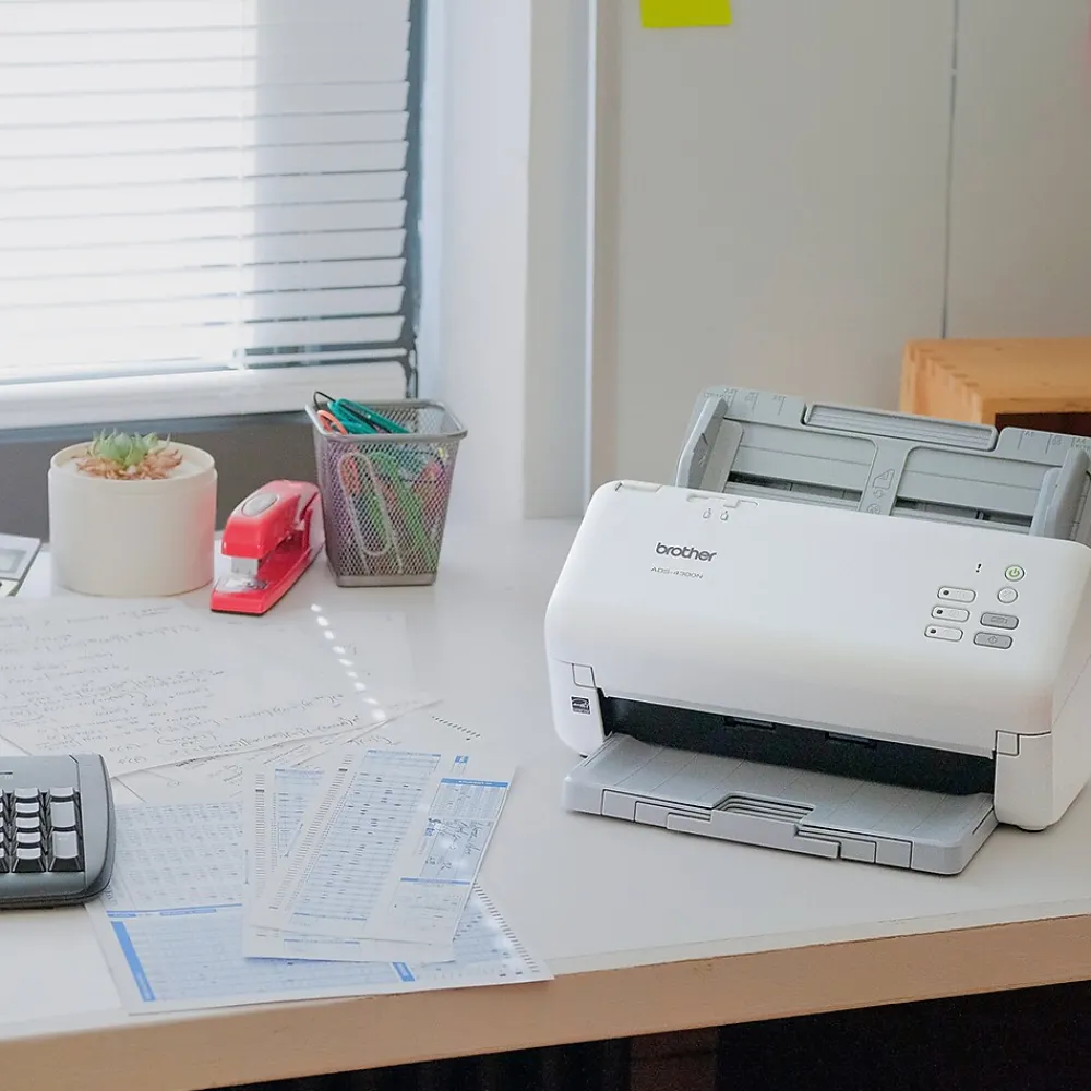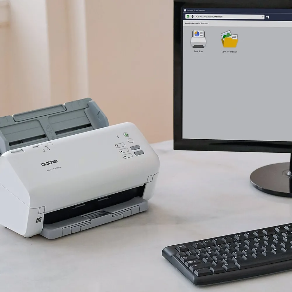 The Brother ADS-4300N professional desktop scanner with Ethernet connection is an essential component of an optimized fleet for the way work now works.