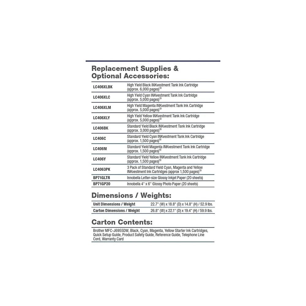 - Reliable printing that lasts…with up to 1 year of ink in-box‡ Start printing and keep printing for a long, long time with up to 1 year of ink in box*. Brother INKvestment tanks are bottle-free – no fuss, no mess.