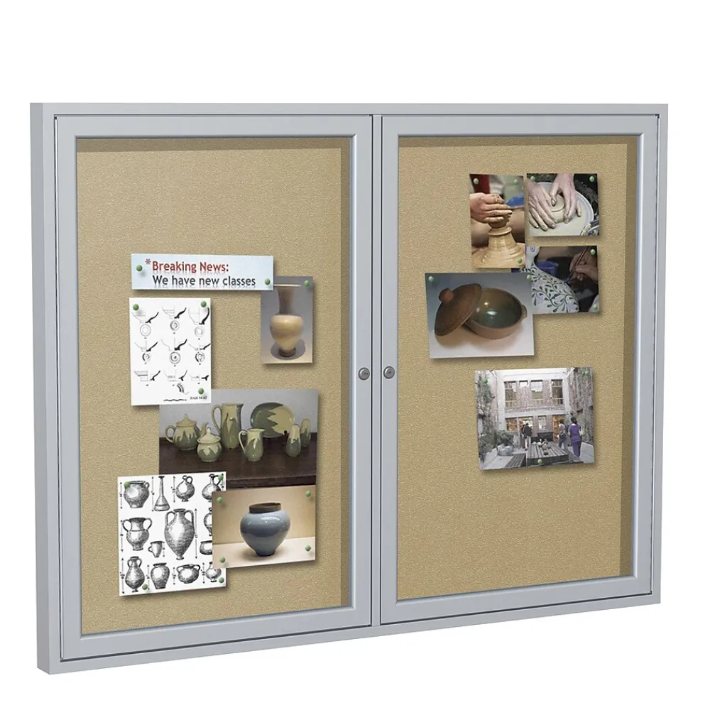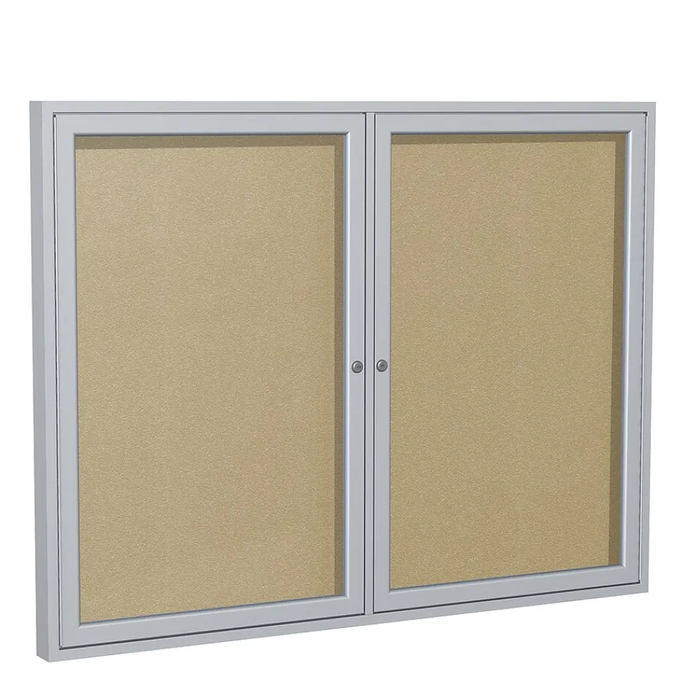 Ghent’s Enclosed Vinyl Bulletin Board is the perfect way to display messages, pictures, and important information securely. The message center is made with a vinyl tack surface that hides pin holes and holds up under repeated tacking, providing years of reliable service. When used outside, our vinyl board will not break down or mold, unlike cork enclosed boards. You do not have to worry about damage from weather or humidity as long as you hang the board under an awning or overhang. Ghent’s 2-door enclosed bulletin boards are protected using shatter-proof acrylic panels, full-length door hinges, and locks that are flush with the frame. You can install the board in high-traffic, public areas without worrying about damage or tampering. Hidden corner brackets allow the message center to sit flush against the wall without any visible hardware which adds protection from vandalism. The colored vinyl surface is paired with a Satin aluminum frame and includes 2 keys. Ships to you in Ghent’s worry-free packaging, designed specifically for shipping enclosed boards. Ghent’s Enclosed Vinyl Bulletin Board carries a 10-year warranty and is made in the USA. Perfect for indoor and outdoor use.
