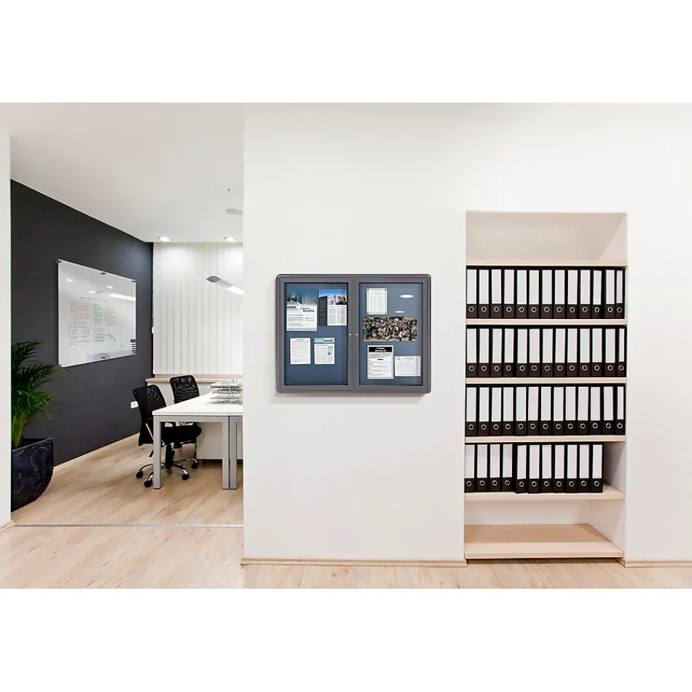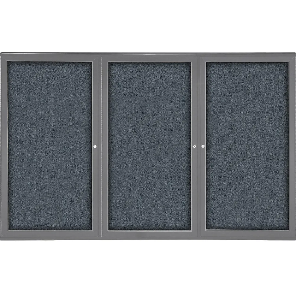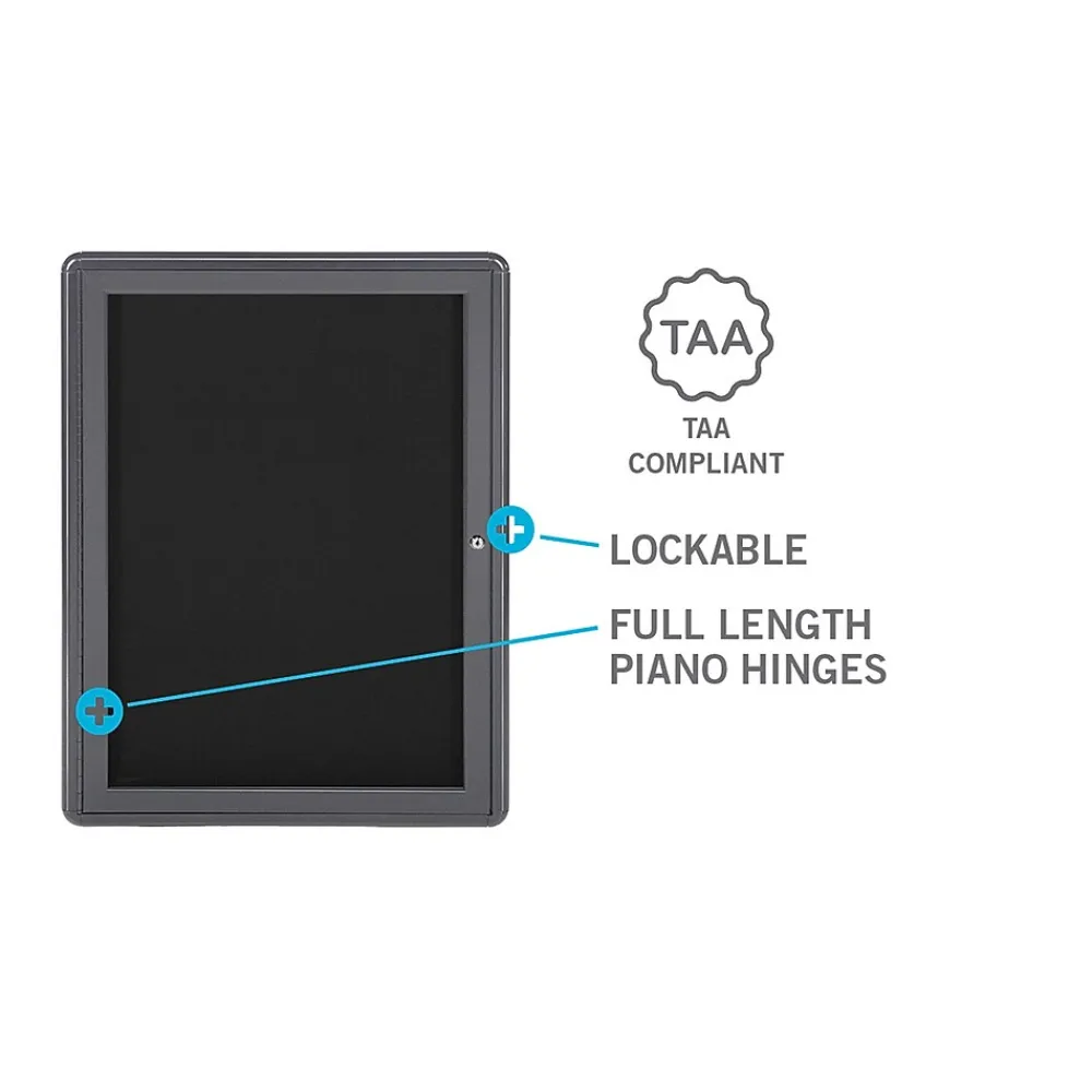Ghent’s Ovation Enclosed Bulletin Board is a sleek, modern take on the traditional message center. The fabric bulletin surface is paired with a powder-coat gray matte frame that suits any environment. The radius frame and soft edges act as a mid-century modern accent, moving away from the more common industrial frame. Ghent’s fabric bulletin board hides pin holes while holding announcements and papers tight against the board. The fabric surface is colorfast, so you won’t have to worry about the surface fading or wearing down over time. Shatter-resistant acrylic panels make the enclosed board safe, never having to worry about shattered glass or cracking. Full-length piano hinges give the doors additional strength so you can change information on the bulletin surface as often as you need without worrying the hinge will weaken. Each locking board comes with two keys and includes built-in hanging hardware, meaning you can keep your announcements and bulletins secure in public areas. Each board ships to you in Ghent’s worry-free packaging, designed specifically for shipping enclosed boards. Ghent’s Ovation Enclosed Fabric Bulletin Board carries a 10-year warranty and is made in the USA. Recommended for indoor use only.