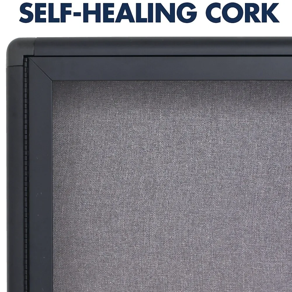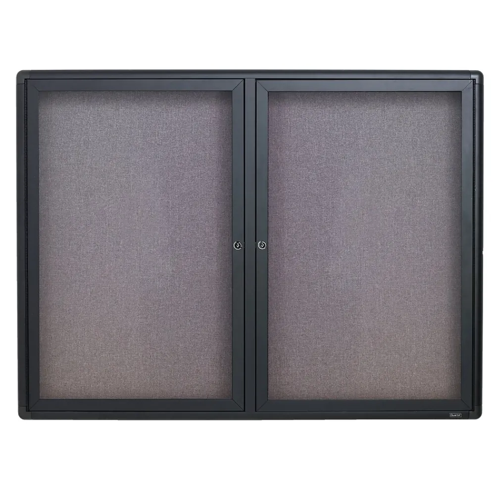Draw attention to important documents and other materials while keeping them secure thanks to this Quartet 3′ x 4′ enclosed bulletin board. Pinned items stay firmly in place in the high-density fiberboard covered with durable gray fabric and are enclosed in an aluminum case with rounded corners and a graphite-finish. The doors are constructed with high-resistance shatterproof glass and feature a lock with one key, perfect for areas with a lot of traffic.