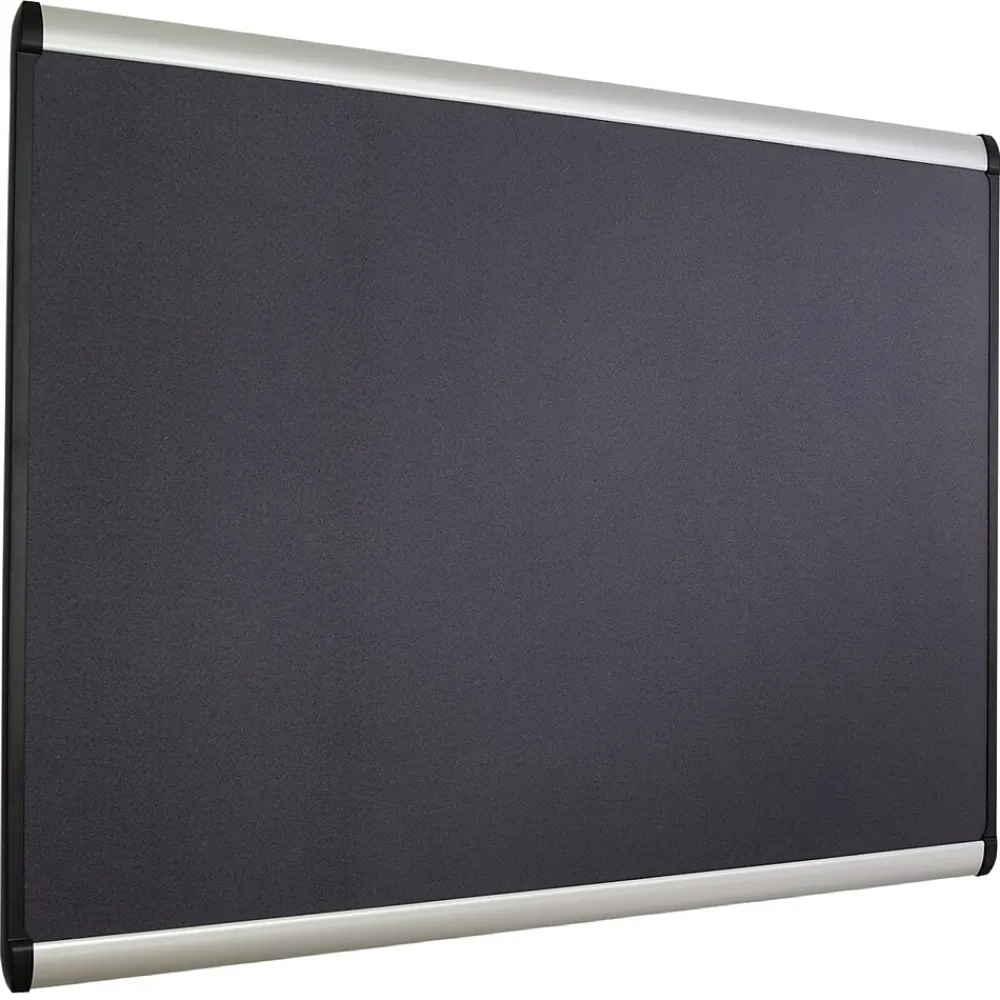 Make more out of your wall space when you use this mahogany finish framed bulletin board to create a quick and convenient display of important documents, notes, memos, and more. This Quartet Prestige Plus 4′ x 6′ bulletin board accepts pins or magnets to secure items thanks to the unique magnetic fabric surface. The surface is made from a durable fabric that will not crumble or fade with a high-density backing that holds pins tight. Set up takes not time at all with the Easy Mount hardware, magnets, and quick clips included.