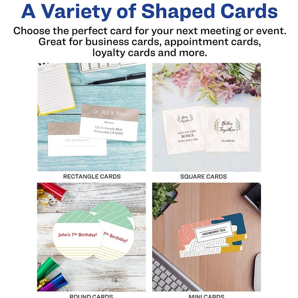 - Each sheet of Avery cards features proprietary Sure Feed technology that provides extra grip to help guide sheets through the printer for improved alignment and fewer wasted cards