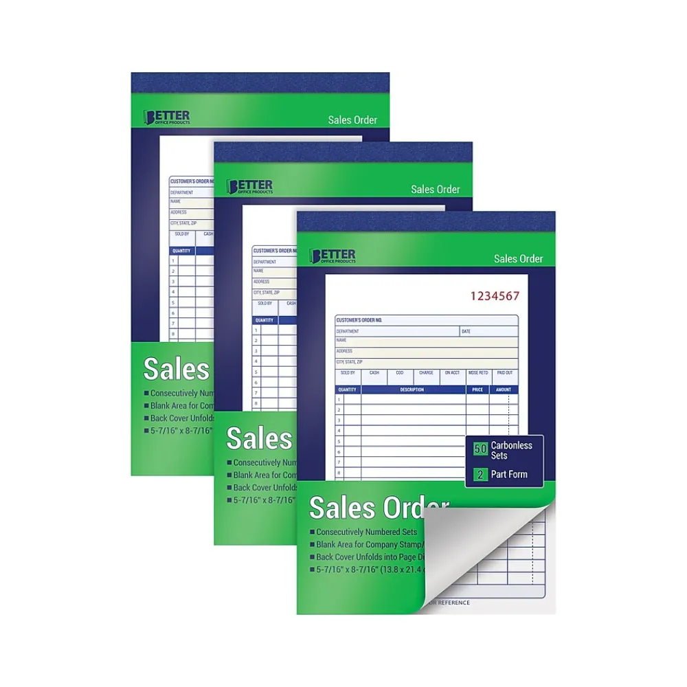 - Effortlessly identify the chronological order of transactions in the book by the preprinted number on each sales order set