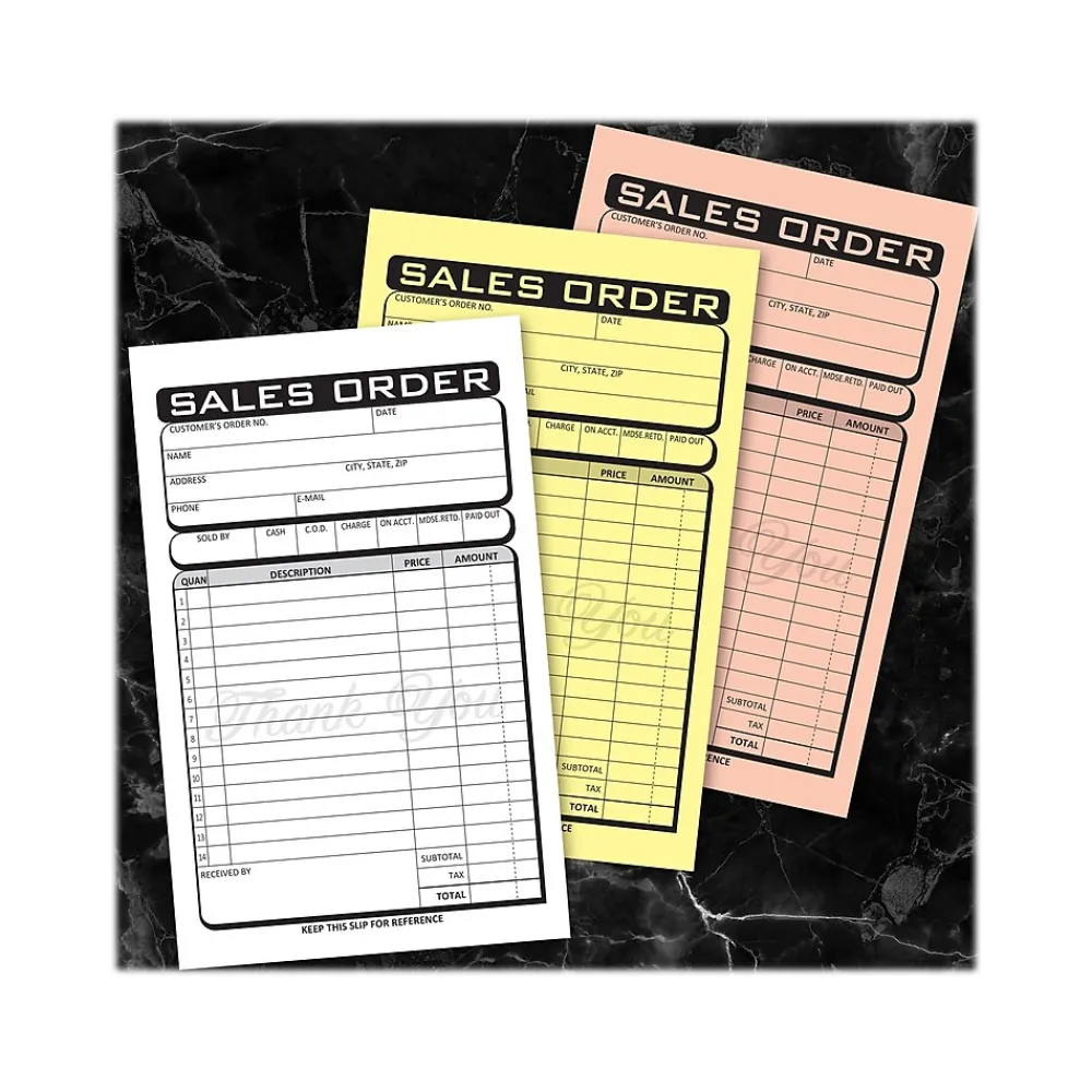 Offer a professional-looking business form with this Cosco preprinted three-part carbonless sales order form book. Ideal for small business use. Easy to write on with pens or pencils. Perforated for easy sheet removal. Cardstock slip included to prevent information from being imprinted onto the forms below.