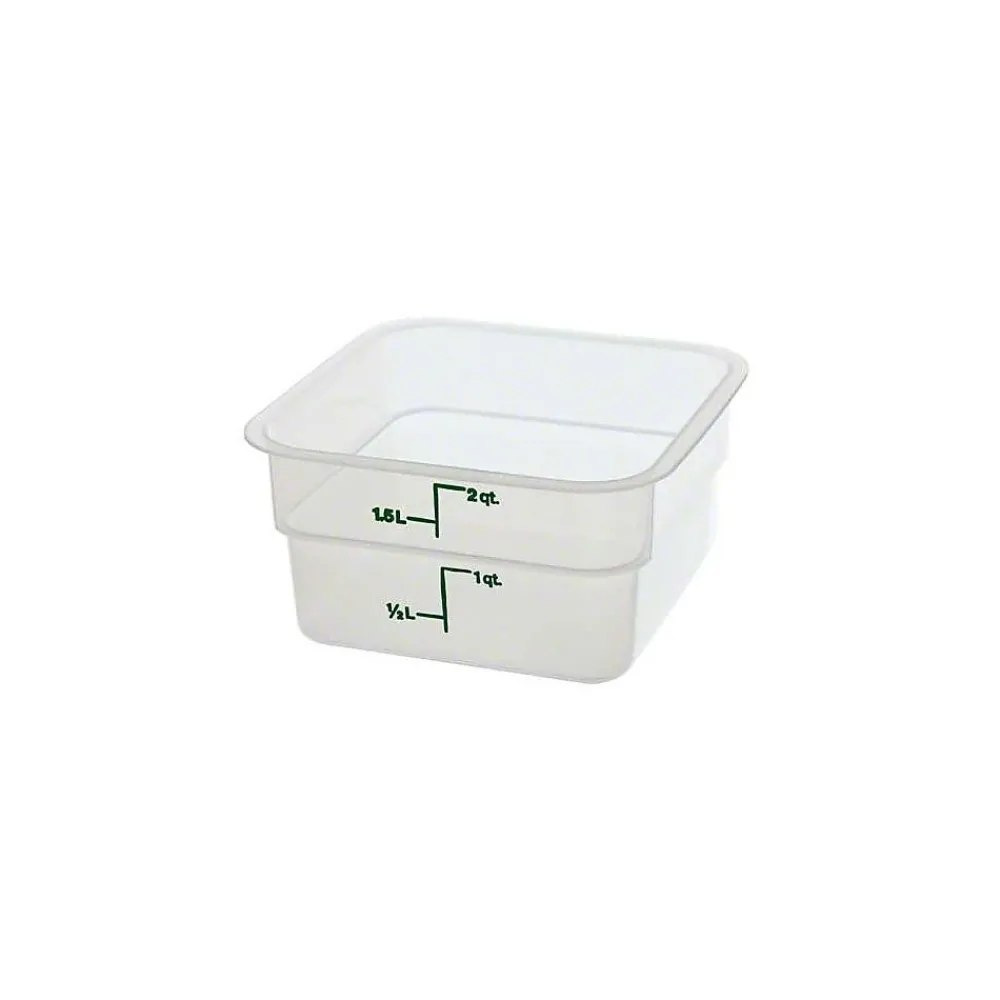 Cambro® CamSquare® Food storage container in clear color is made of polypropylene for durability and has a capacity of 2 qt to store products. Container measuring 3 7/8″ x 7 1/4″ withstands temperature of range -40 to 160 deg F.