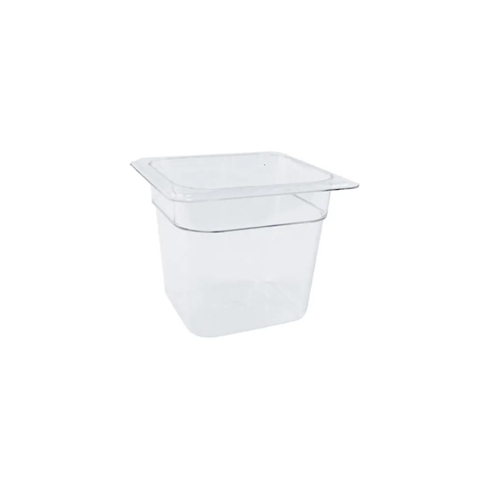 Ensure efficiency while increasing food safety in your establishment with this Cambro 66CW135 Camwear 6″ deep clear 1/6 size food pan! Built to withstand temperatures from -40 to 210degrees Fahrenheit, and made of virtually-unbreakable Camwear polycarbonate, this food pan is designed to last even in the toughest commercial kitchens. This pan won’t crack, bend, or dent. Use it to store, transport, and serve all from the same pan – the clear complexion offers an easy-to-see option, while molded-in graduations in standard and metric measurements promote easy inventory management. A uniform 1/2″ flange on this pan ensures a smooth fit in prep tables and food bars while a textured bottom resists scratching under everyday conditions. Inside the pan, a non-stick, smooth interior surface promotes easy cleaning while increasing yields, and a large radius bottom limits food waste. This pan won’t react to food, minimizing the risk of a potentially hazardous chemical or acidic reaction. Plus, tests prove that Camwear food pans keep product as cold as stainless steel pans, with less condensation. This means your fresh produce stays fresher, longer, saving you money in the long run! When not in use, this pan stacks neatly without wedging or sticking to other pans.