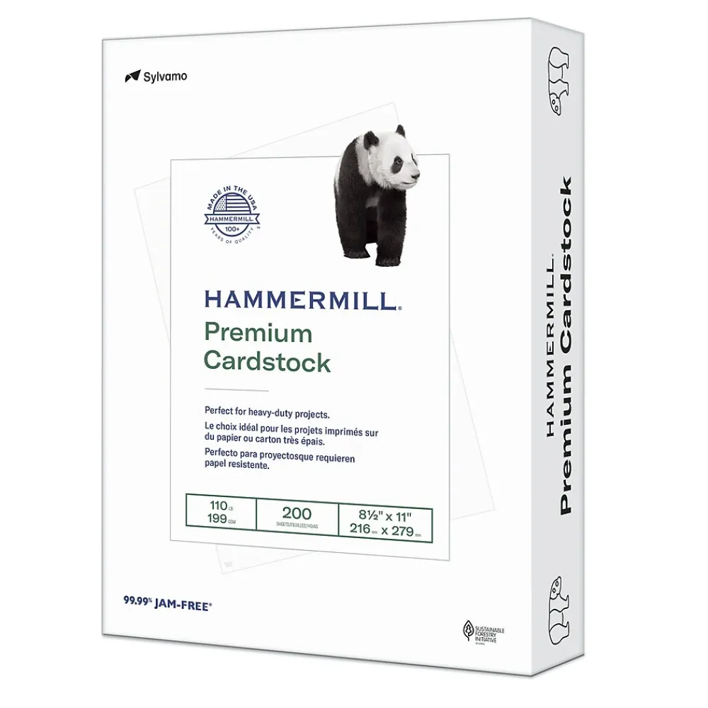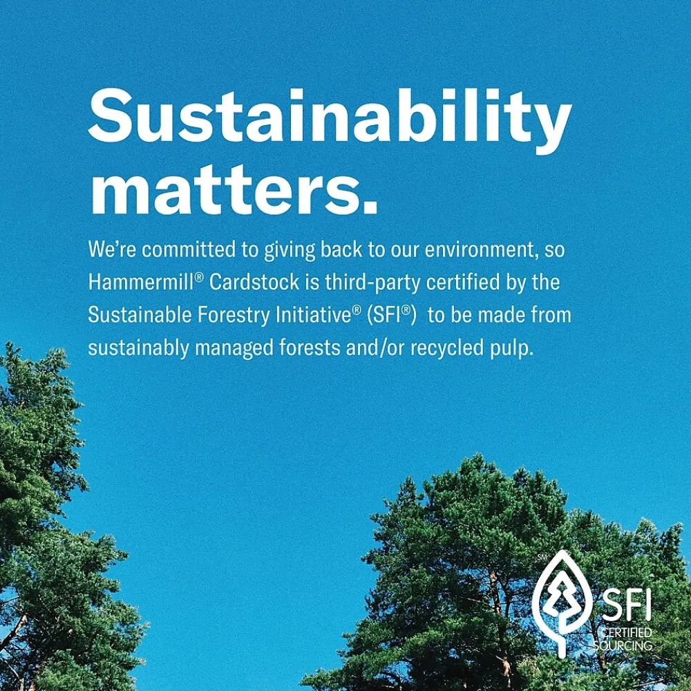 Hammermill Premium white cardstock is a high-quality colored cardstock paper that increases visual appeal to help make your documents stand out from the crowd. Runs efficiently through a variety of printers. Excellent for color-coding. Contains 30% recycled content.