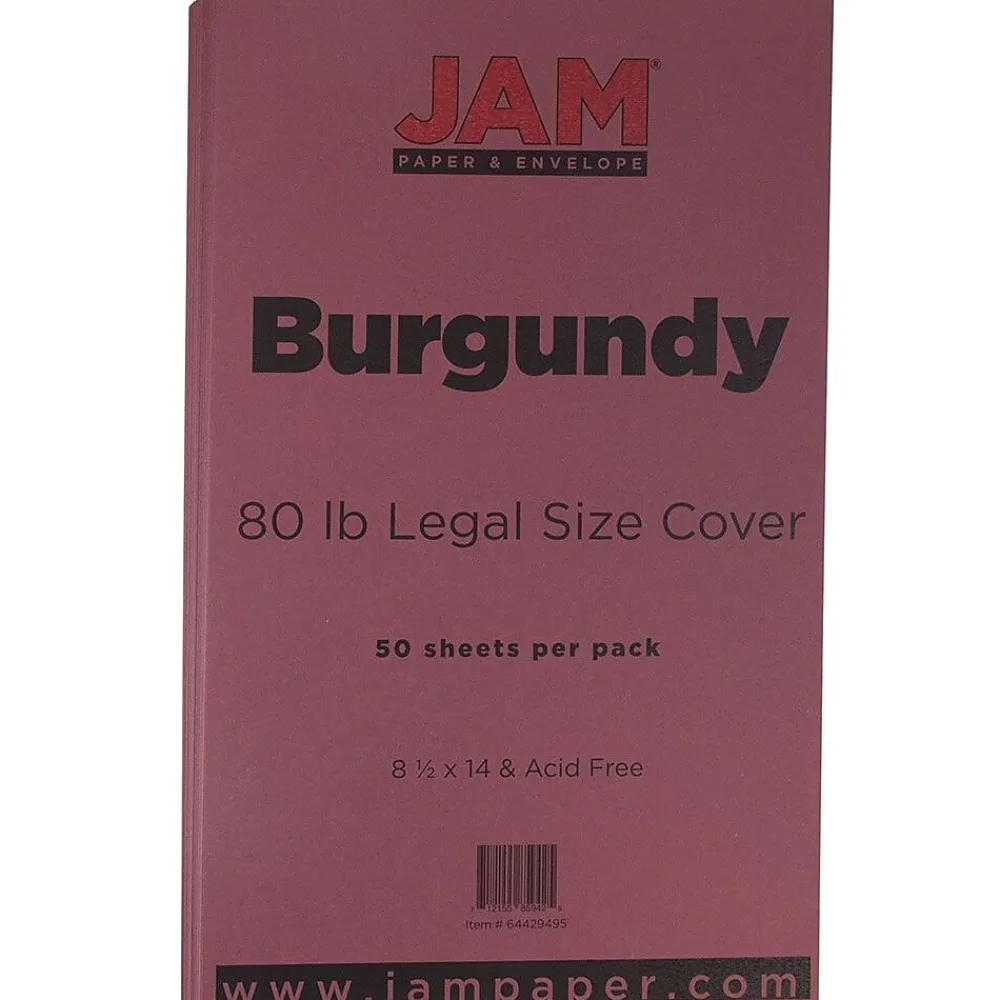 For a dark, rich look, get your hands on this burgundy JAM PaperĀ® Premium Legal Paper Cardstock! The dark, burgundy color is the perfect shade of wine, making it stand out for any event or correspondence. This cardstock is great to use for invitations, cards, letters, business mailings, promotional flyers, arts and crafts and more! It is made of 80lb paper and has a smooth finish, which makes it look sleek and adds a touch of subtle classiness. This cardstock is a legal size, meaning it measures 8.5 x 14 inches and is compatible with most home printers. This luxurious cardstock is sold in packs of 50.
