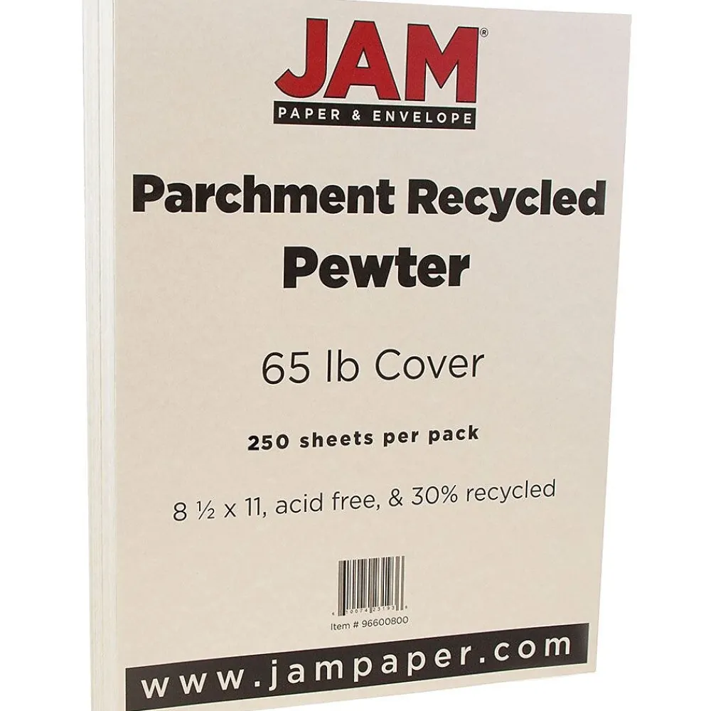 Mottled and antique looking, this JAM PaperĀ® Parchment Cardstock is perfect to use for when you want to transport anyone back into the olden days. Use it for elegant invitations, classy letters and notes, business mailings, promotional projects, flyers, arts and crafts and more! It will fulfill all of your paper needs. This cardstock is made of the highest quality, 65lb paper, so it is sturdy and reliable and perfect to use for any occasion. The pewter color is an extremely light shade of grey, making it a great option for when you need something neutral. It measures 8.5 x 11 inches, so it is a standard letter size. A bonus is that it is made of 30% recycled post consumer content as well. This cardstock is sold in packs of 250.