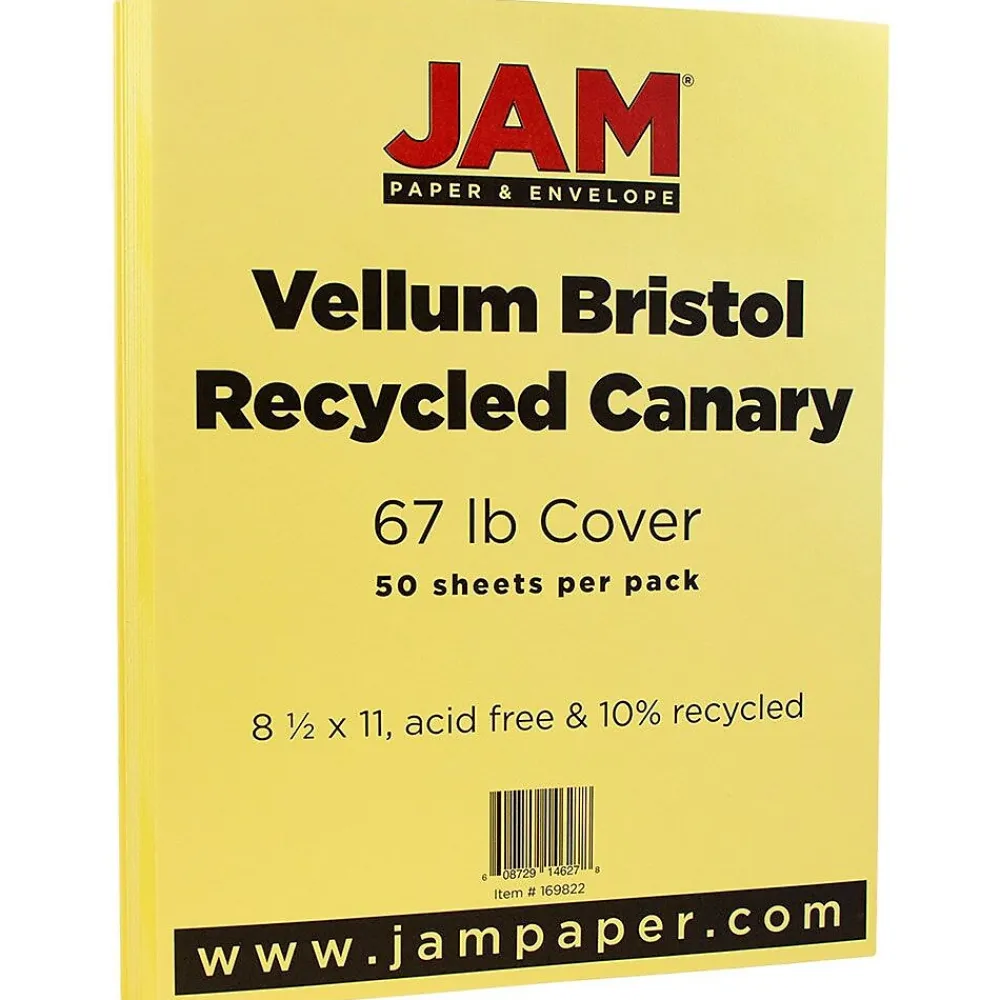 JAM PaperĀ® Translucent Vellum Cardstock is just what you need when you want to add a unique touch to your correspondences and projects. This one of a kind cardstock is made of cool, see through vellum material. It boasts a smooth finish, so it is great to both write and print on and anything you put on it will look clean cut and concise. This particular cardstock is a canary yellow color, so it is cheery and bright and sure to bring a smile to anyone’s lips when they see it. Use it for invitations and cards, letters and notes, business and personal projects, as well as arts and crafts and DIY endeavors. This cardstock measures 8.5 x 11 inches and is a standard letter size. It is sold in packs of 50.