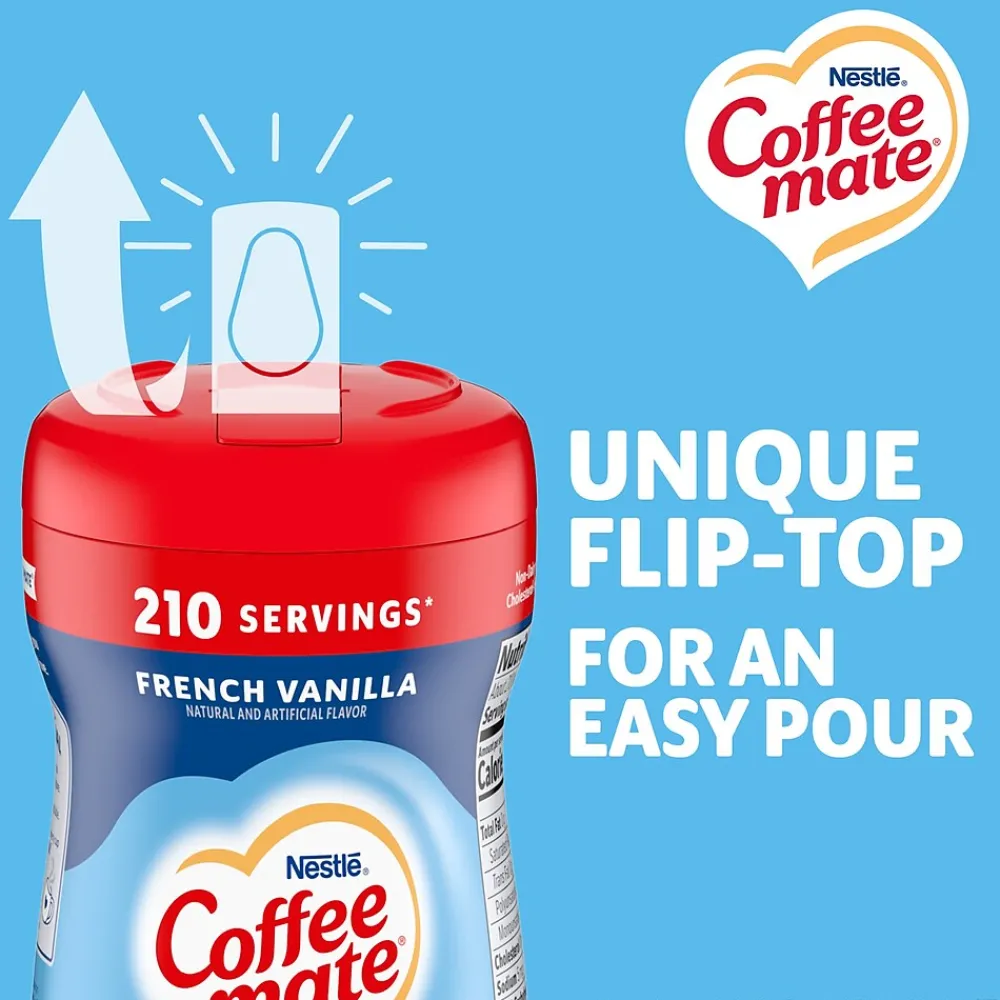 Get the rich and creamy flavor of coffee-house coffee with this Coffee-mate French vanilla coffee creamer. The 15-ounce canister makes it convenient to add just the right amount to create the perfect cup for any taste, and the powdered formulation doesn’t require chilling. Nestle Coffee-mate French vanilla coffee creamer is non-dairy, lactose-free and cholesterol-free for flexibility with multiple dietary requirements.