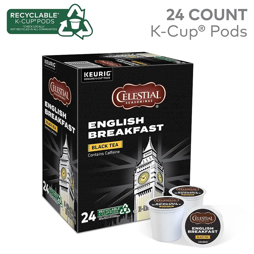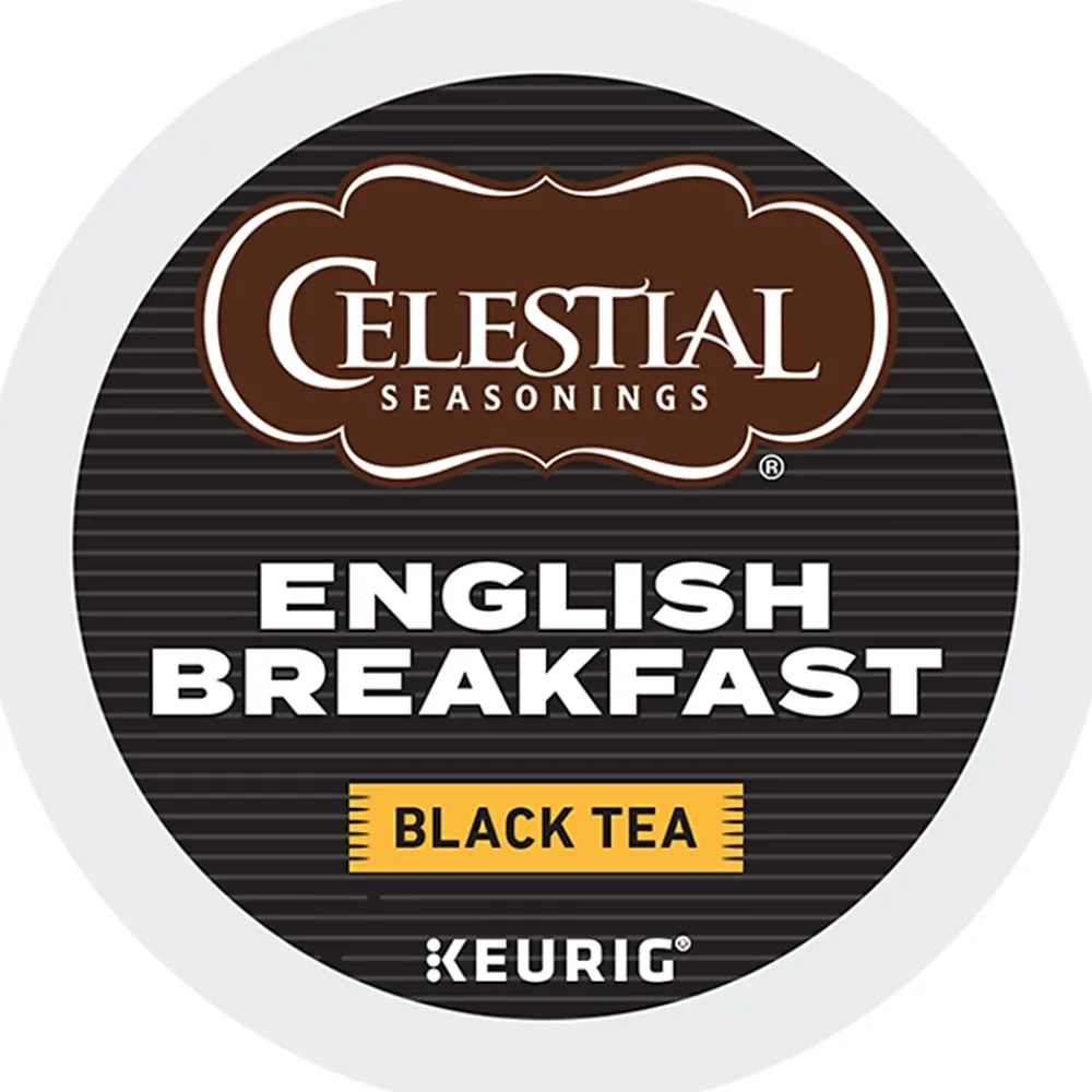Stock the coffee cart with this Keurig K-Cup Celestial Seasonings English breakfast tea in a convenient package of 24 pods. Compatible with Keurig single-serve coffee makers, each one takes the trouble and mess out of brewing a quick cup of tea. Made with black teas from India and Kenya, Keurig K-Cup Celestial Seasonings English breakfast tea delivers a robust blend with a hint of floral straight to your cup.